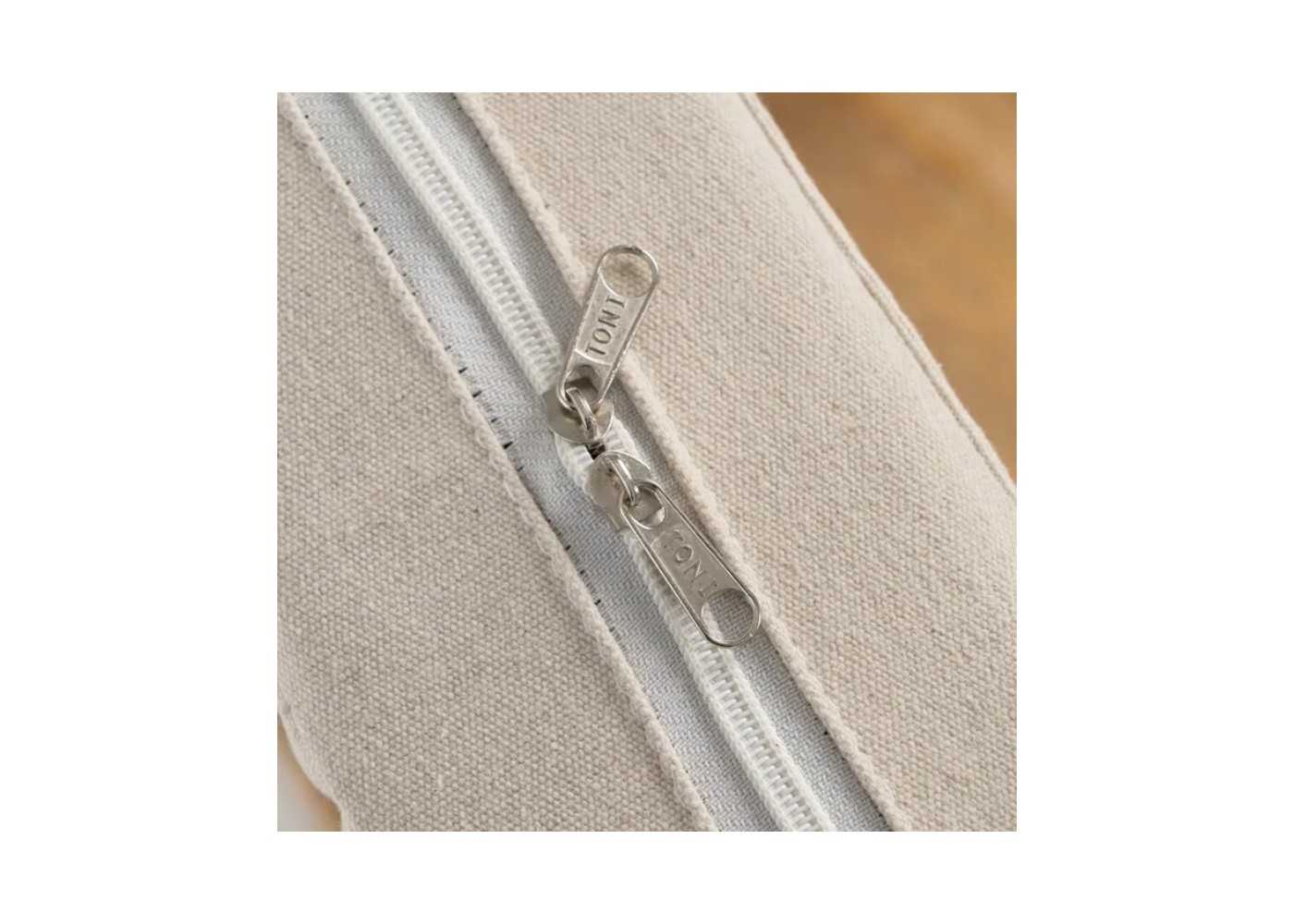 Asiento con cojín tapizado en resistente tela color beige desenfundable con cremallera de 53 cm x 42 cm de fondo x 10 cm de altura. Relleno de espuma de poliuretano.