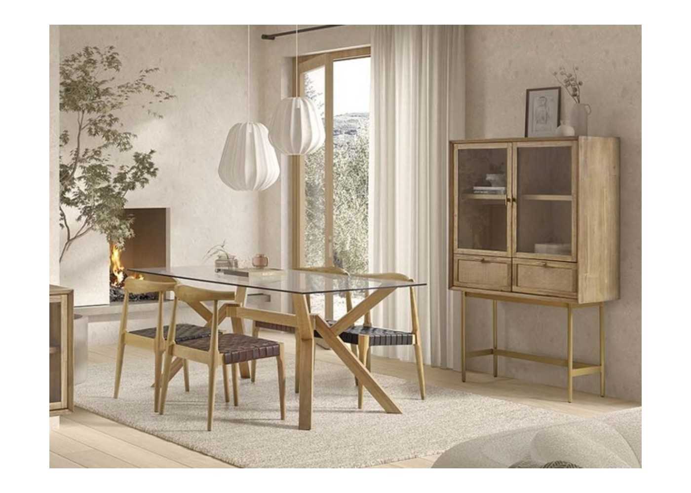 Este mueble vajillero está fabricado íntegramente en madera maciza de acacia, valorada por su resistencia, calidez estética y bajo impacto medioambiental.