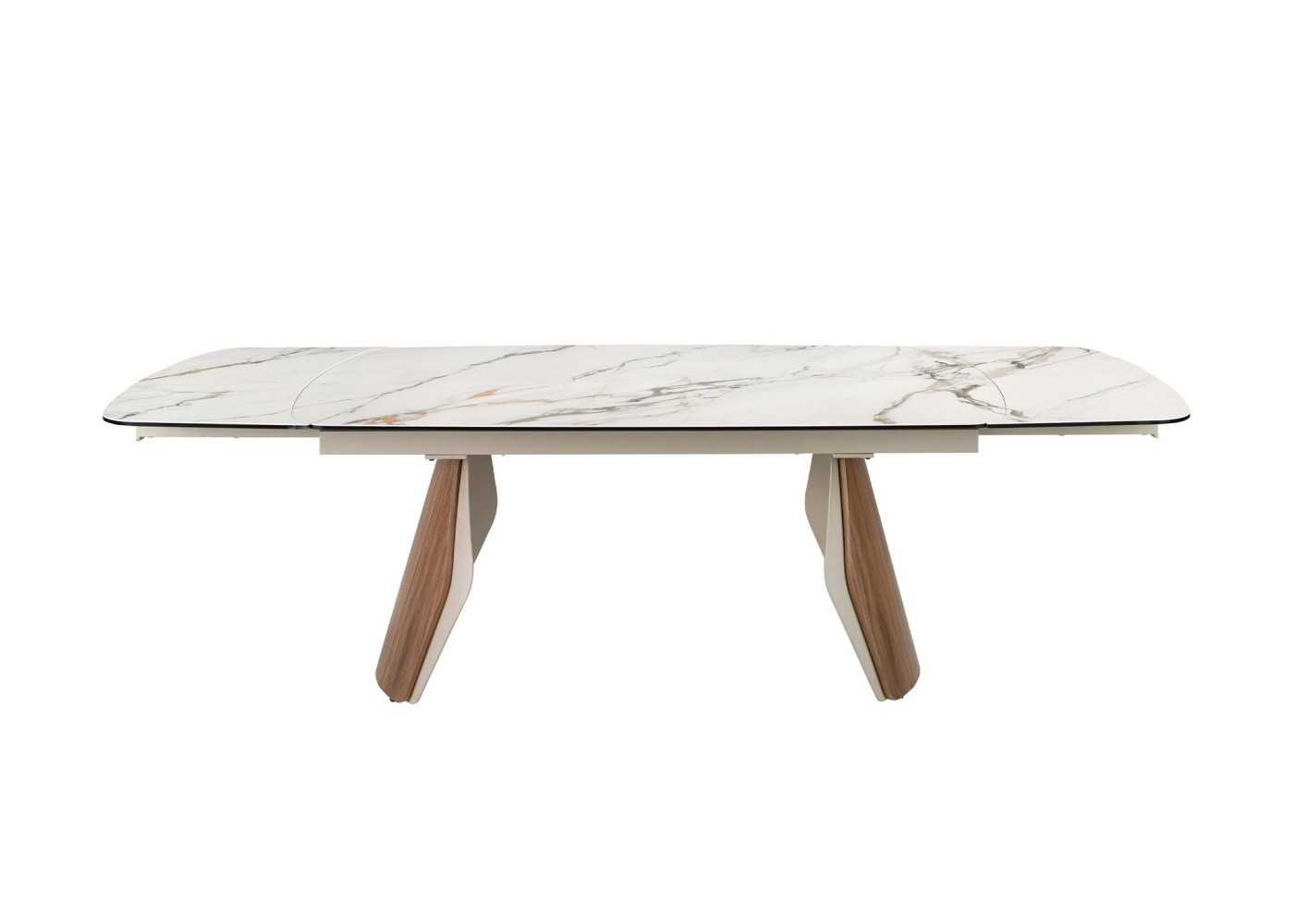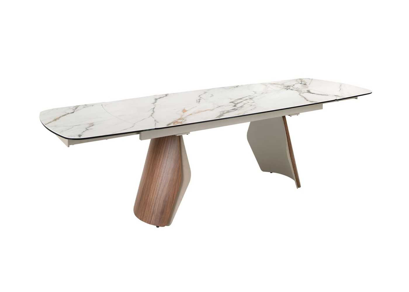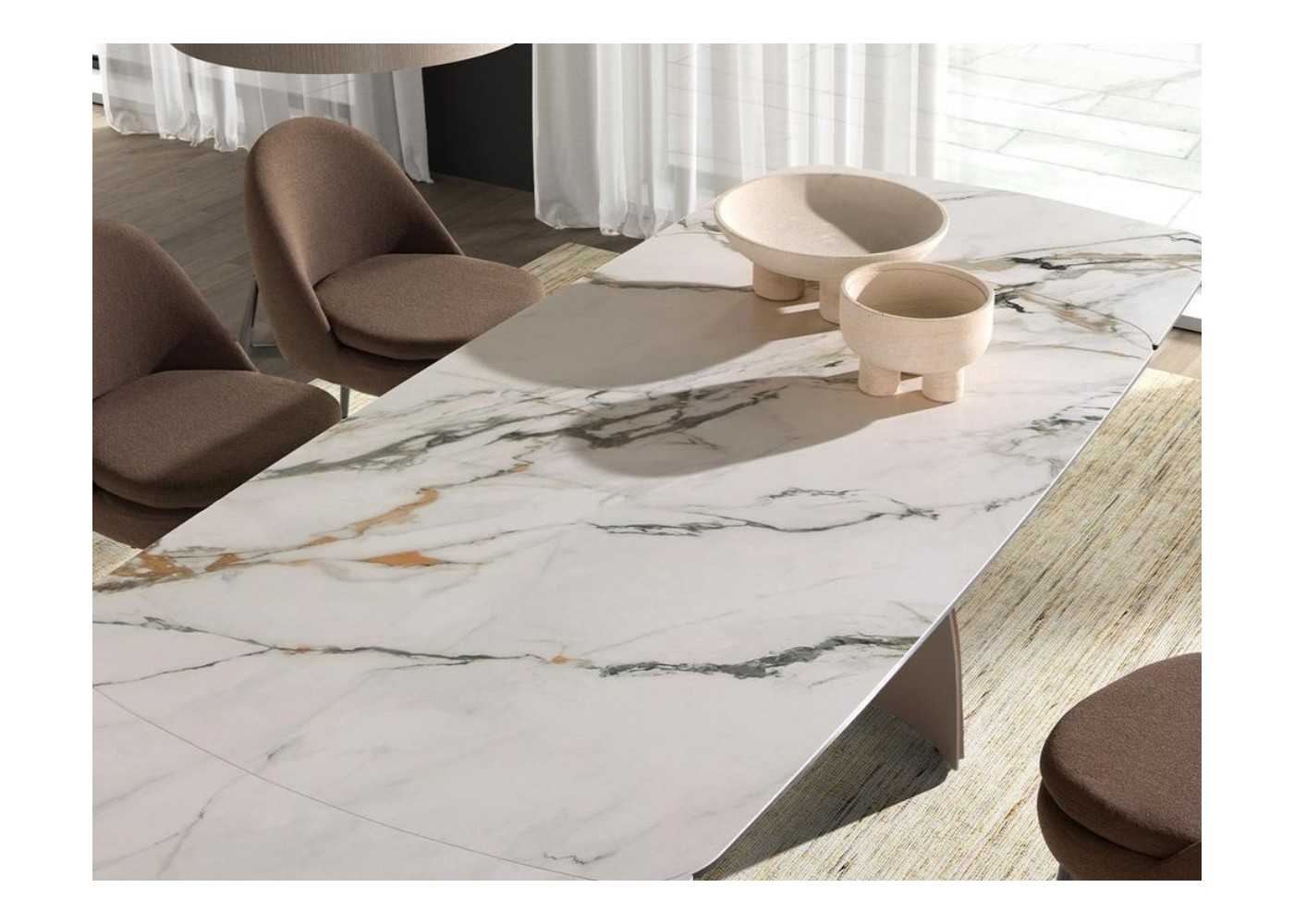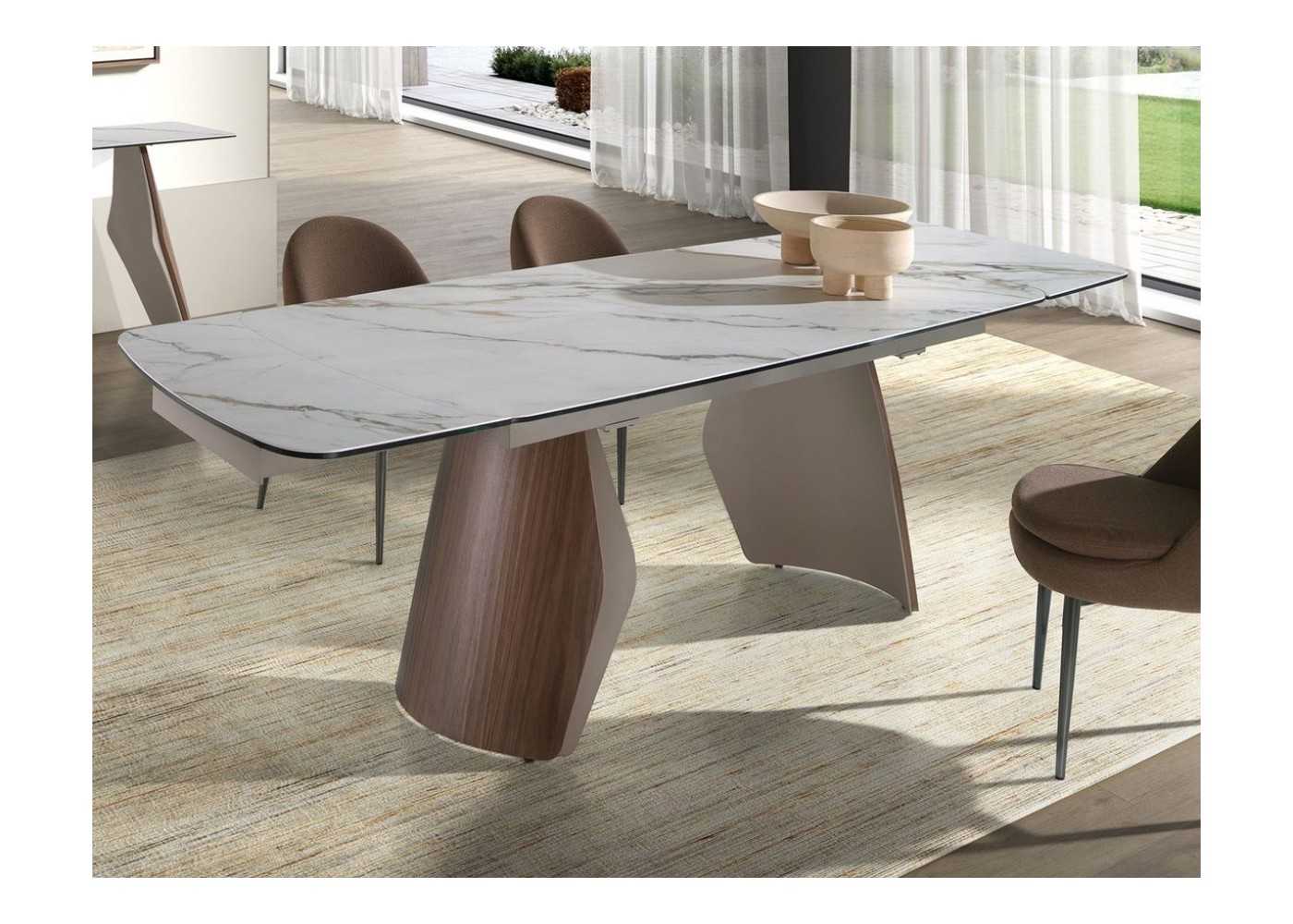 Elegante y exclusiva mesa de comedor extensible de diseño moderno con tapa ovalada barril.