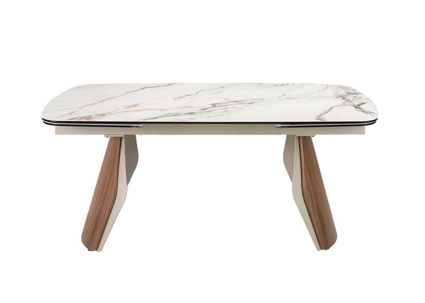 La tapa de mesa tiene 2 extensiones laterales extraíbles de 45 cm en cada lado pudiendo ampliar su tamaño cerrada de 180 cm a 270 cm abierta.Sistema de apertura con mecanismo lateral extraíble de acero inoxidable.