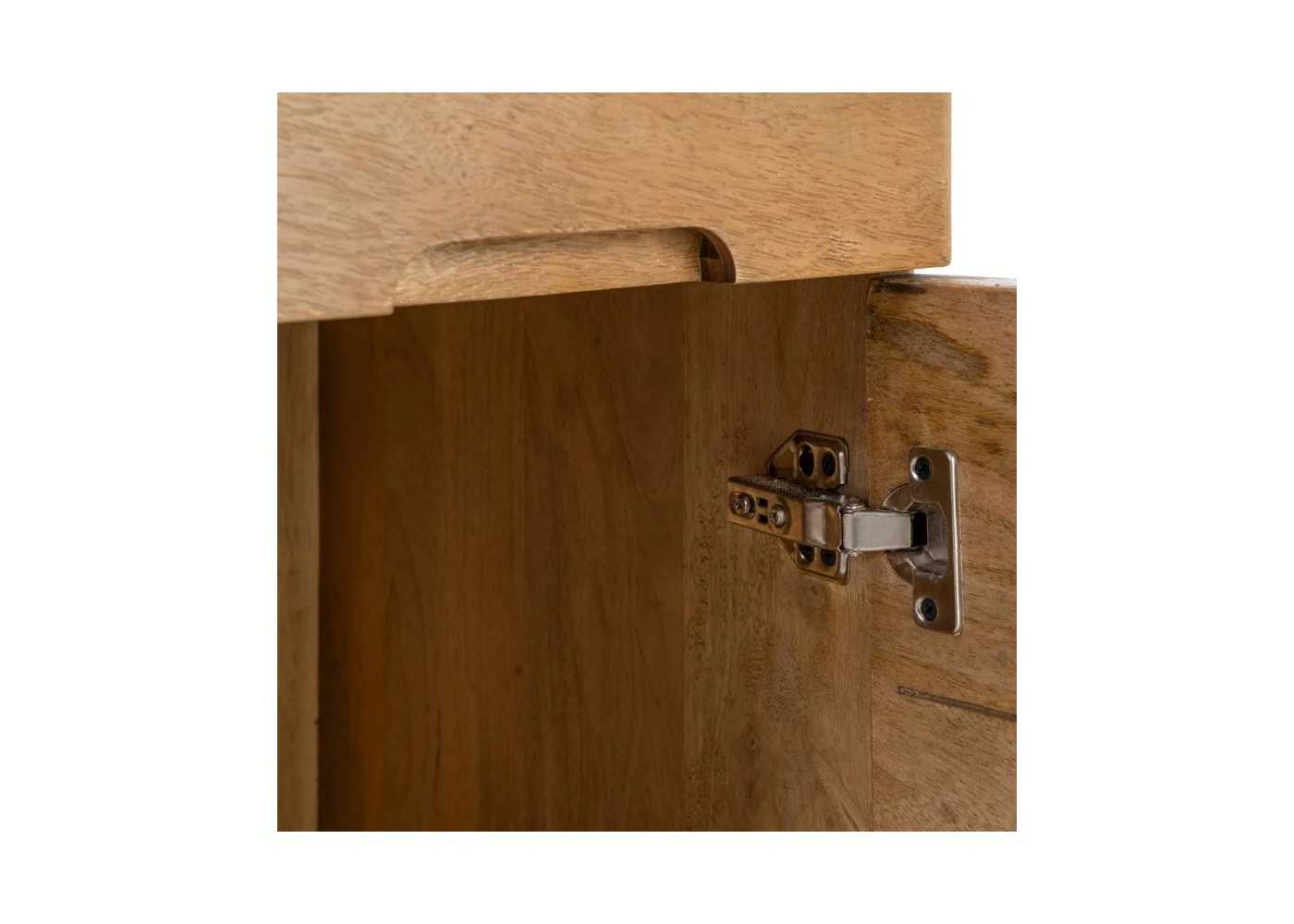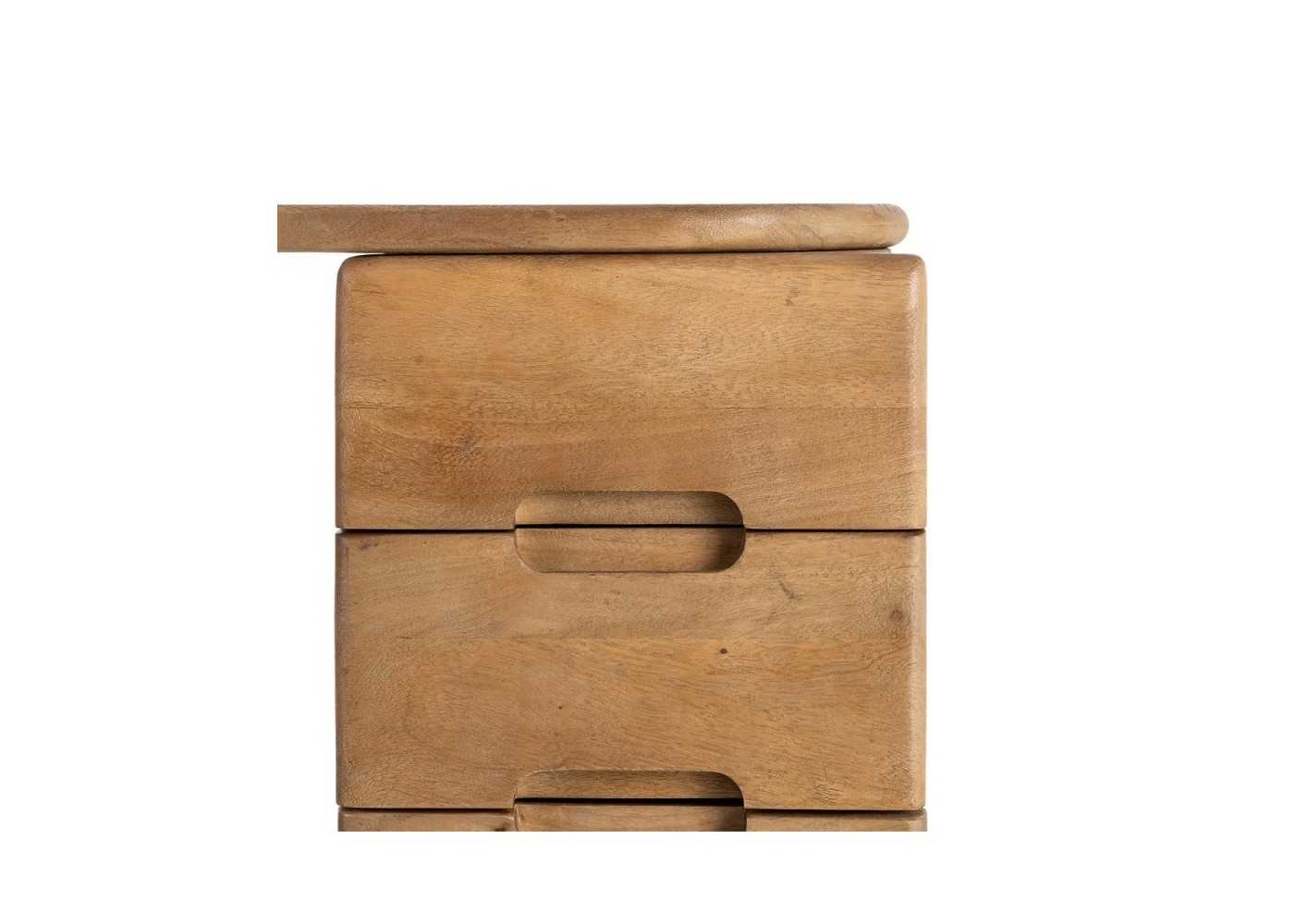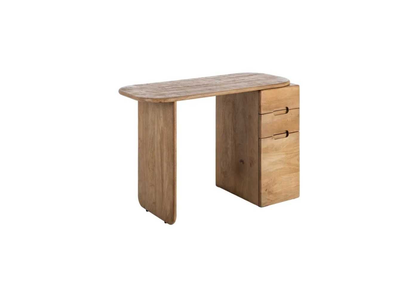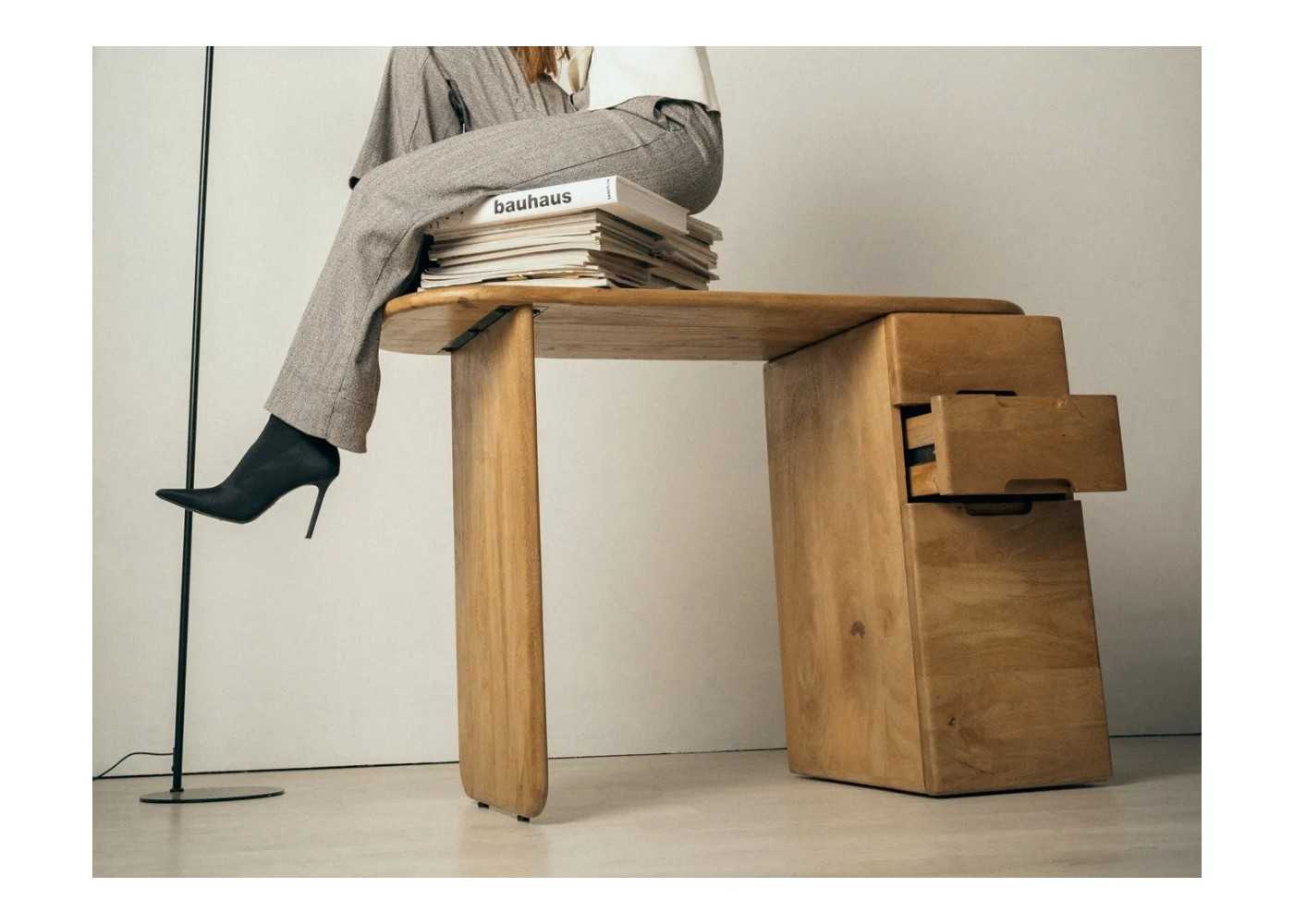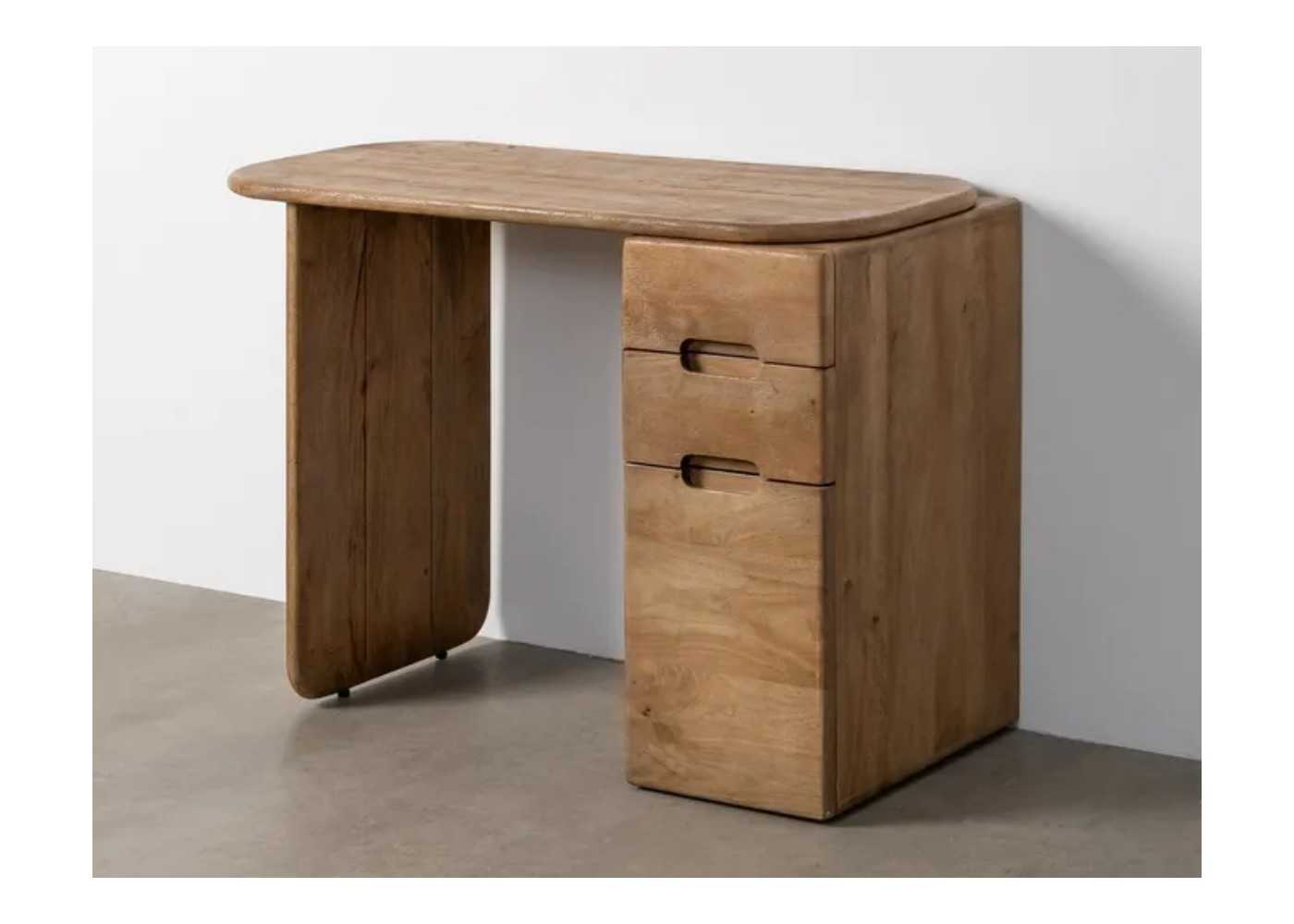 Original y práctico escritorio de líneas retro y redondeadas fabricado en madera maciza de mango color natural.
