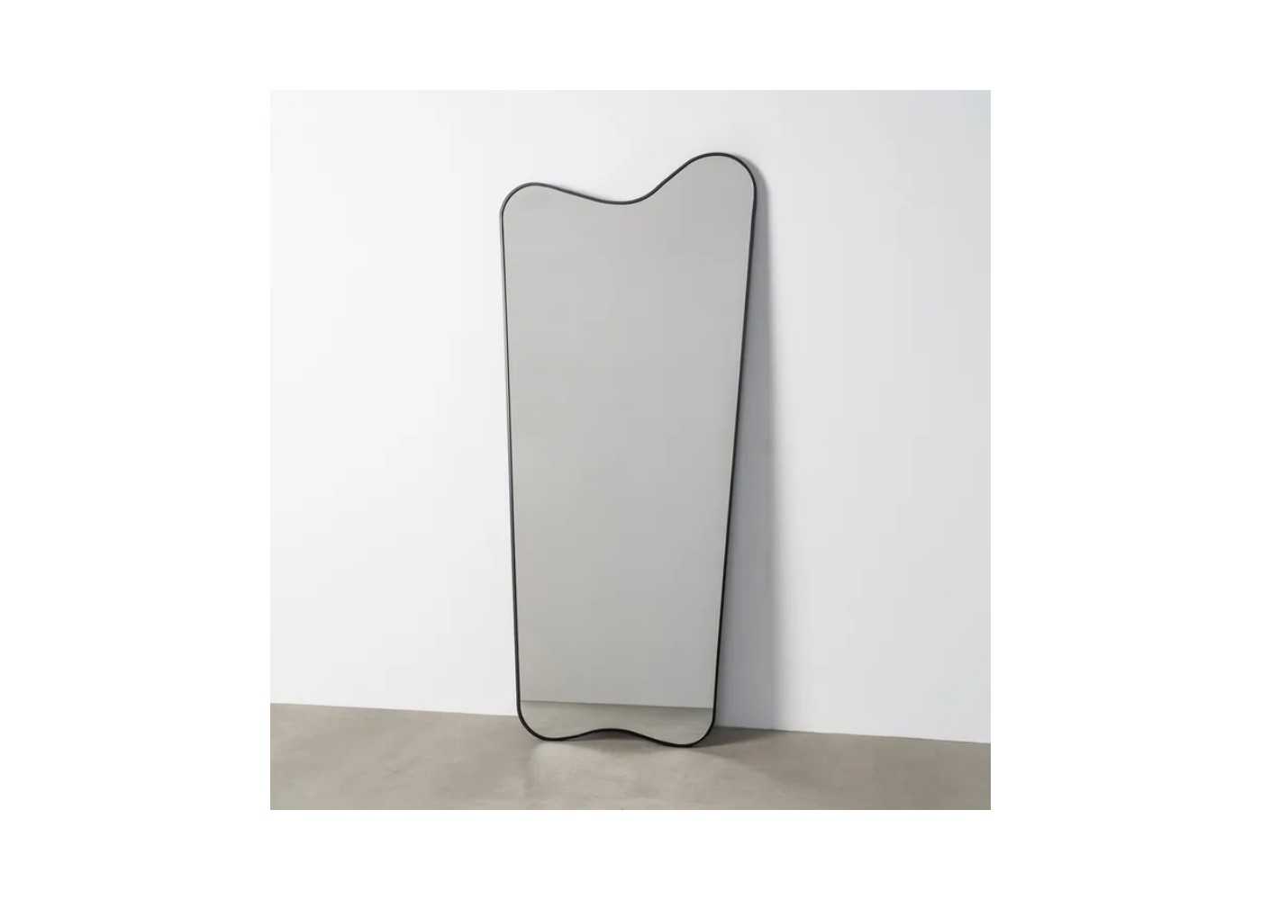Espejo de pie y diseño moderno con marco de aluminio negro.