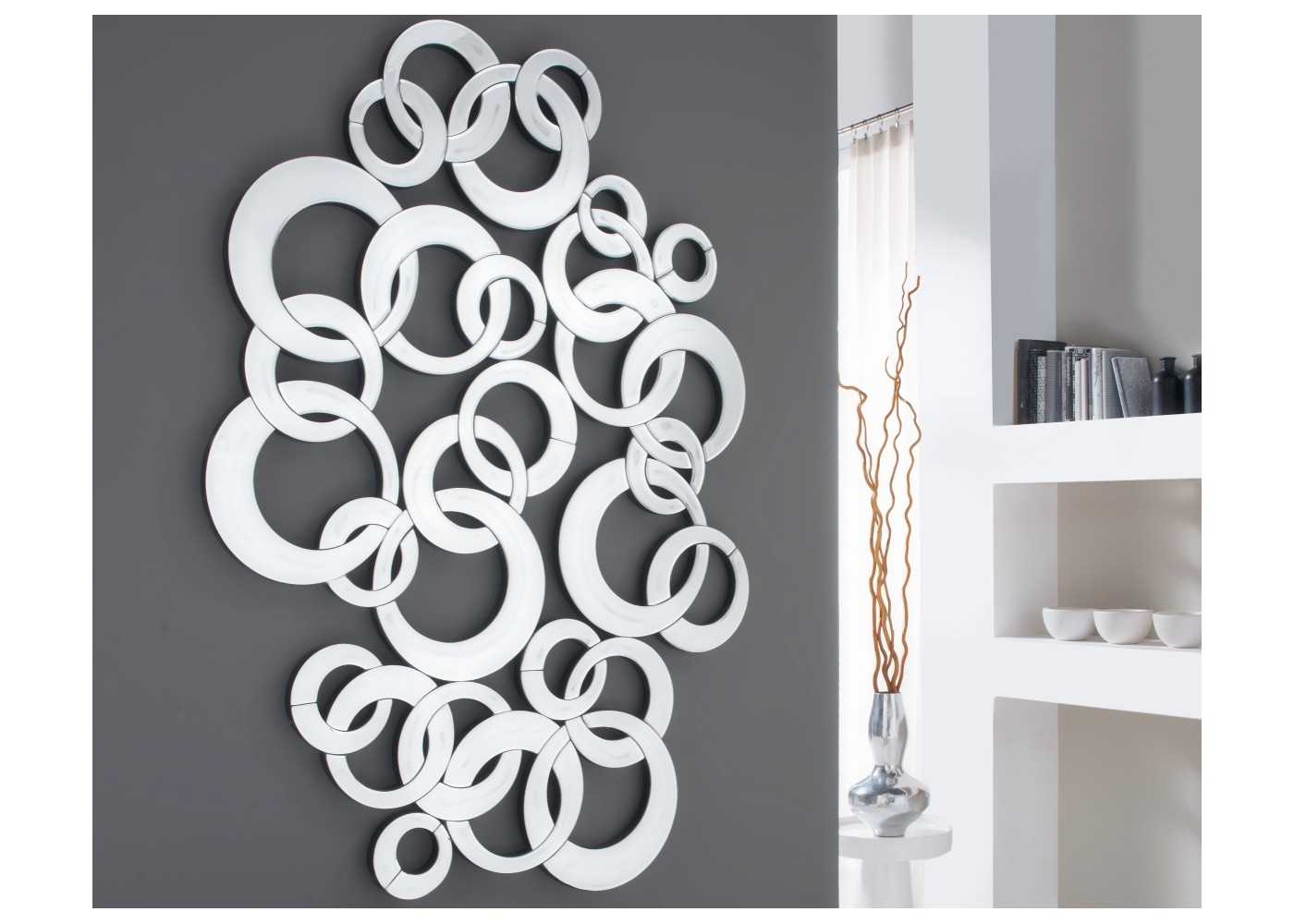 Original y decorativo espejo de diseño moderno compuesto por aros de espejos entrelazados.