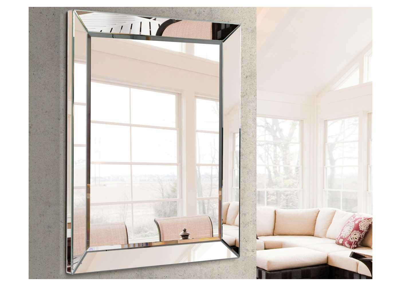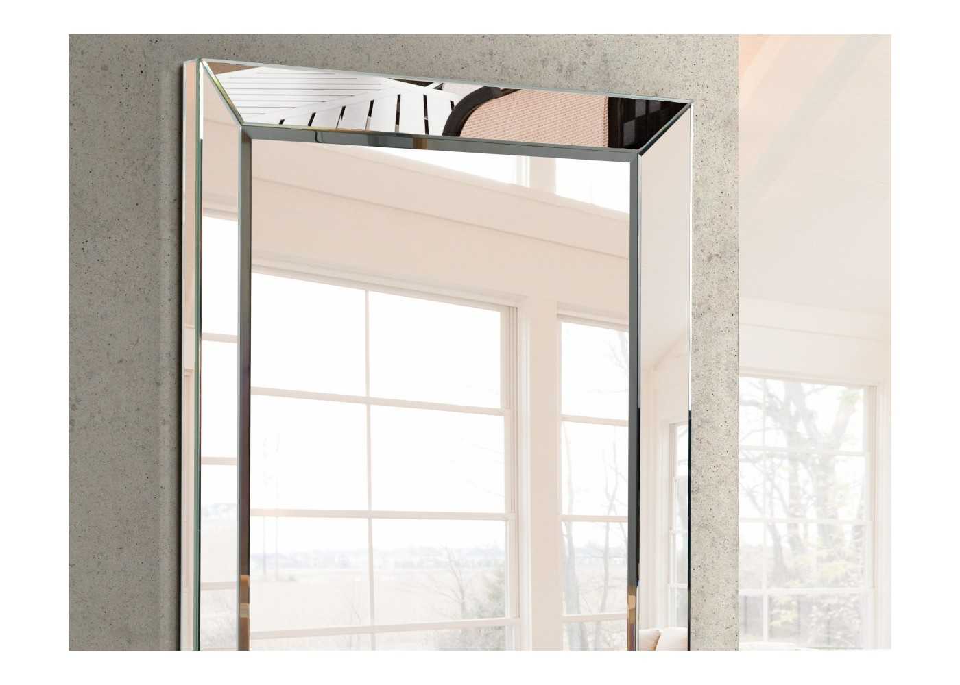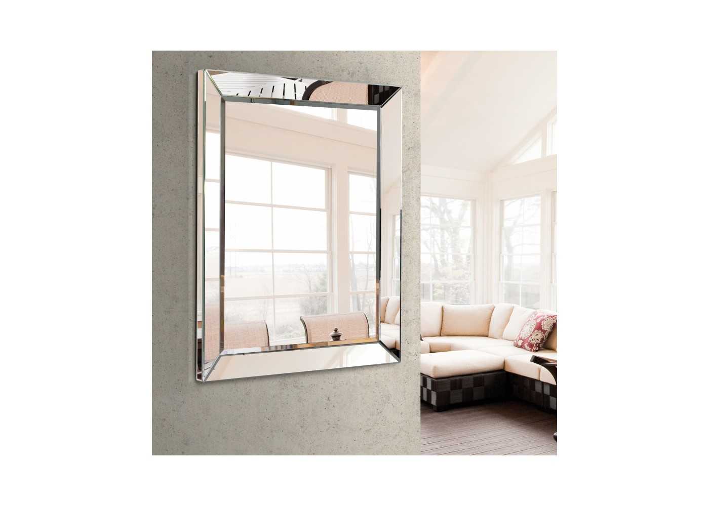 Elegante espejo rectangular de diseño contemporáneo con marco fabricado de espejo.
