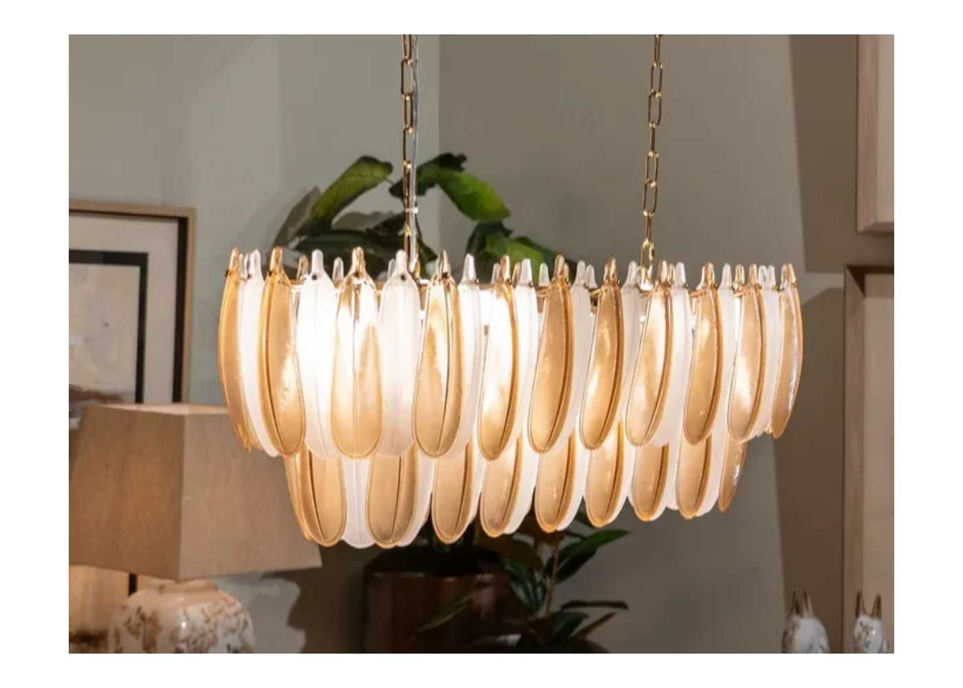 Compuesta por originales plumas de cristal en color champagne de formas redondeadas.