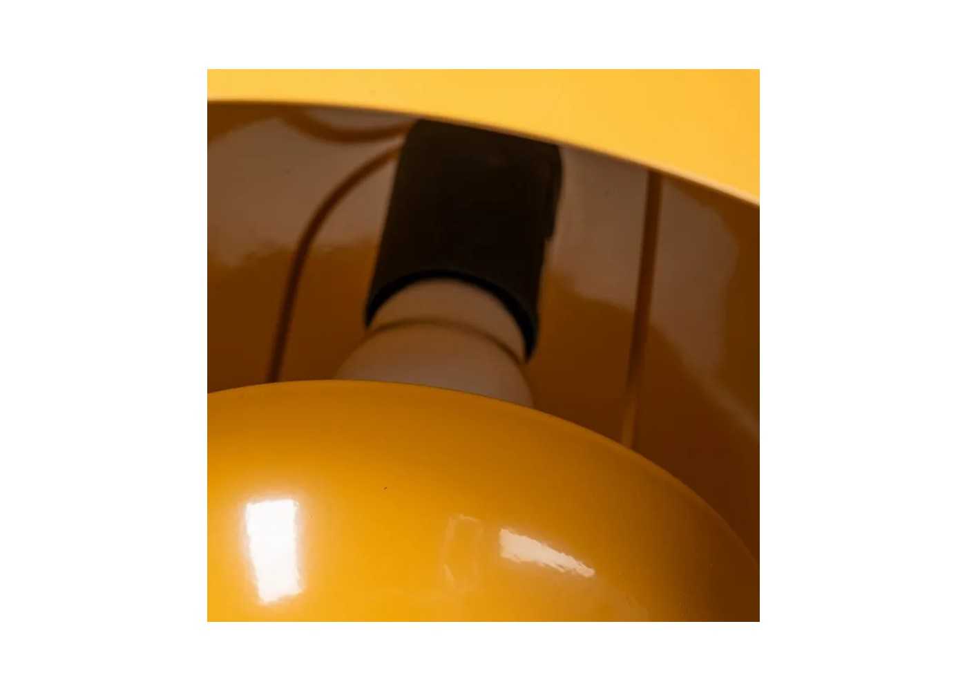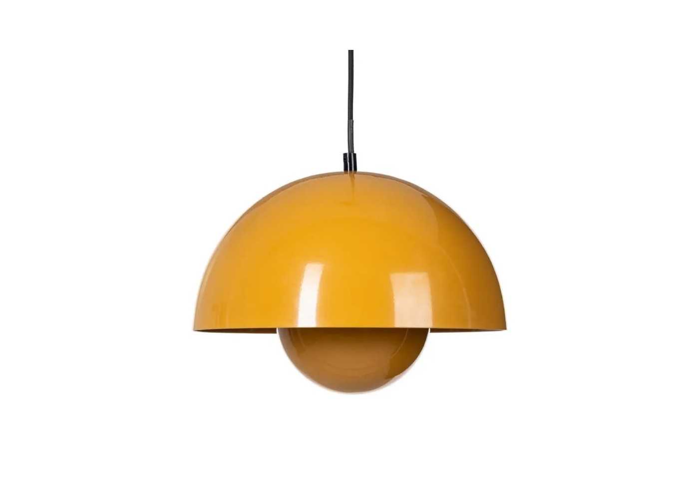 Lámpara de techo en metal lacado y cristal de color naranja.