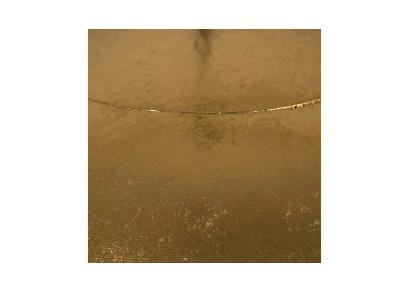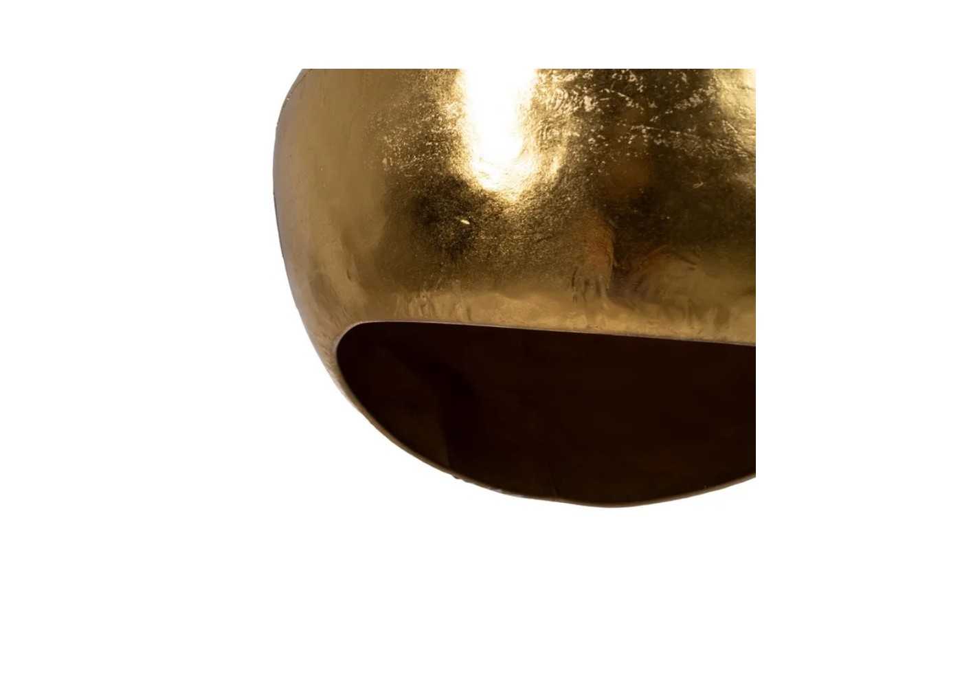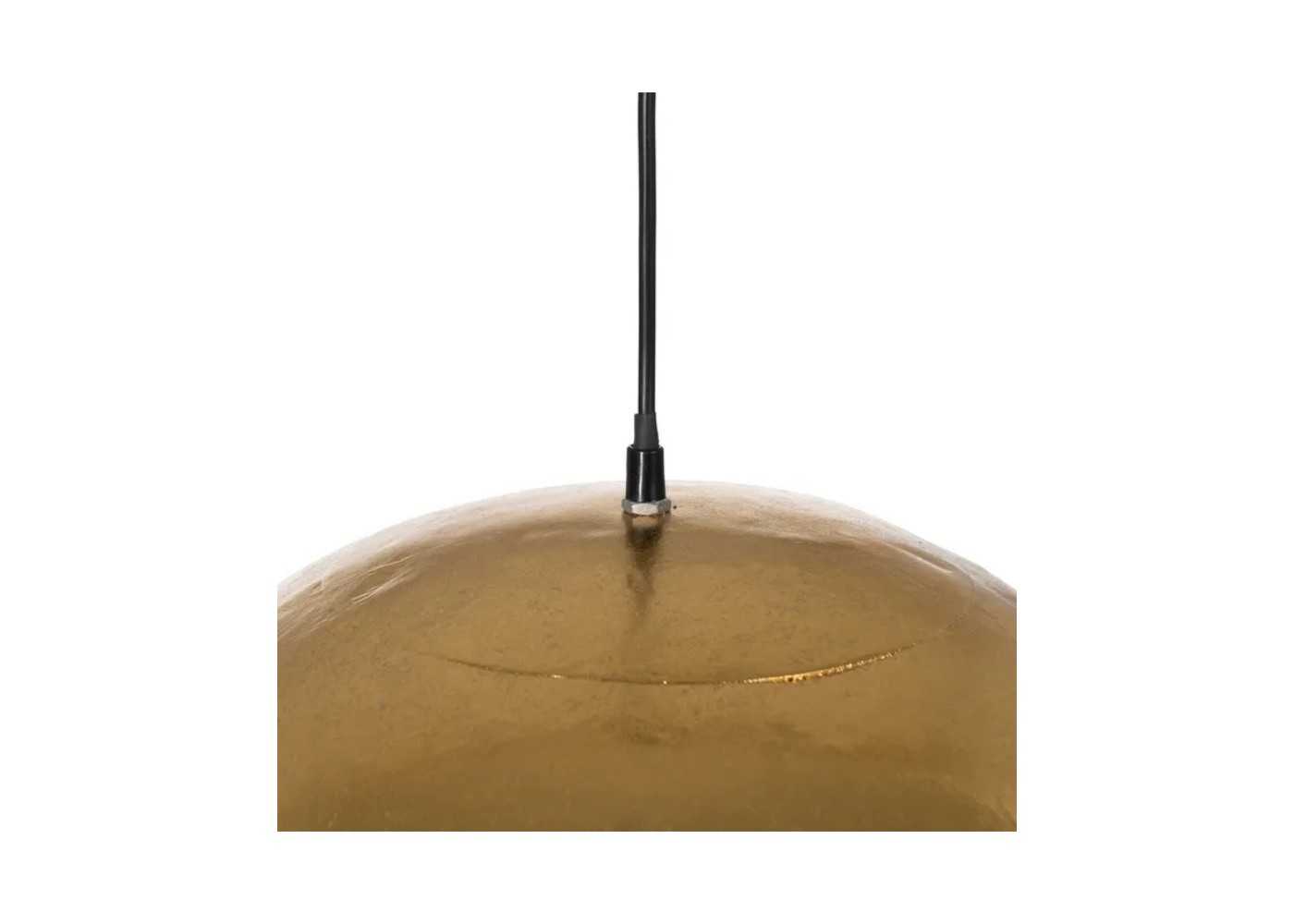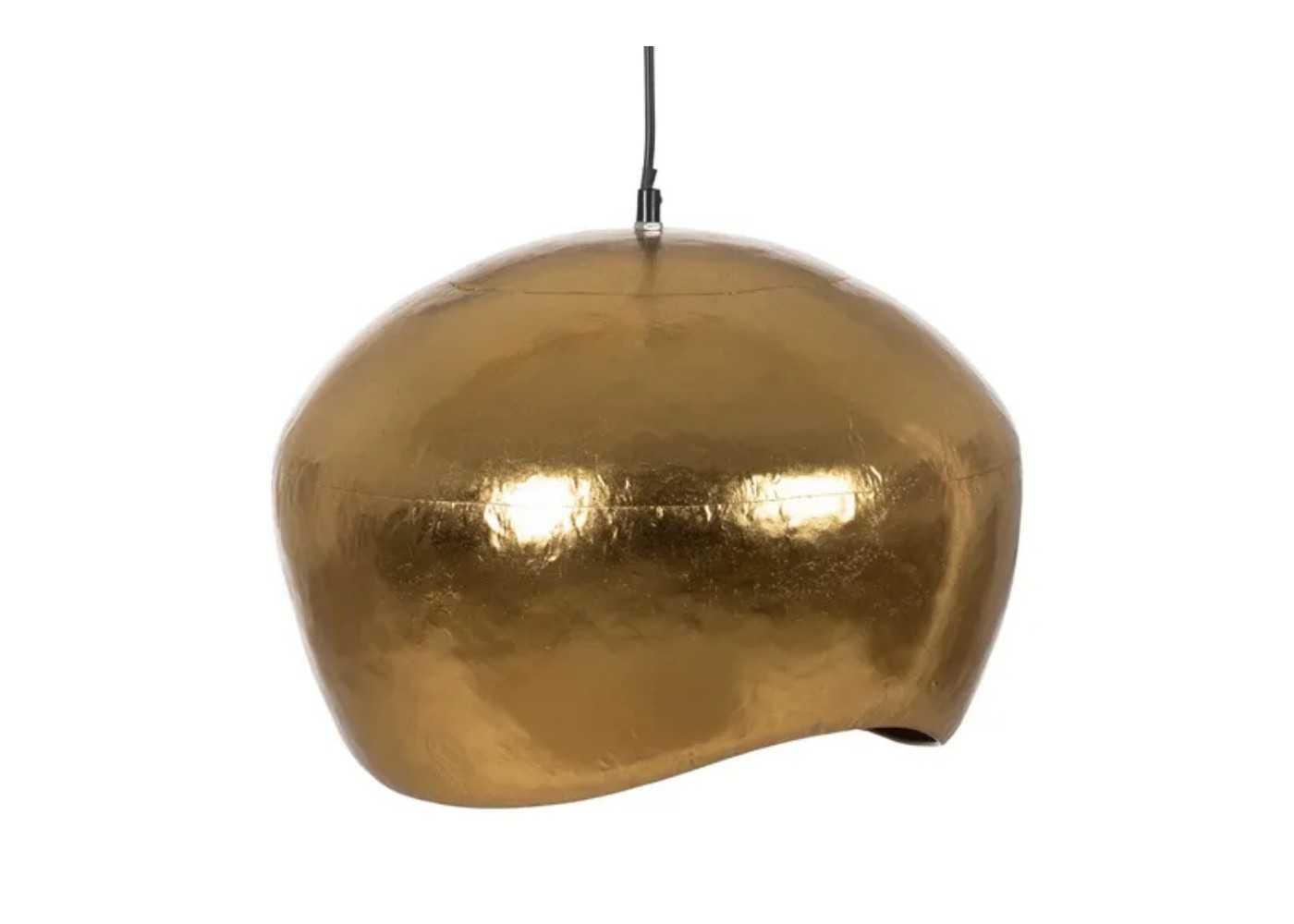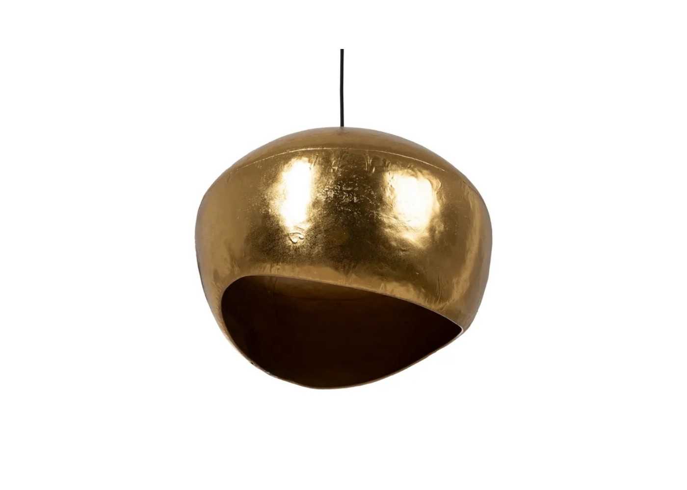 Moderna lámpara de techo con tulipa redonda de metal dorado de líneas irregulares.