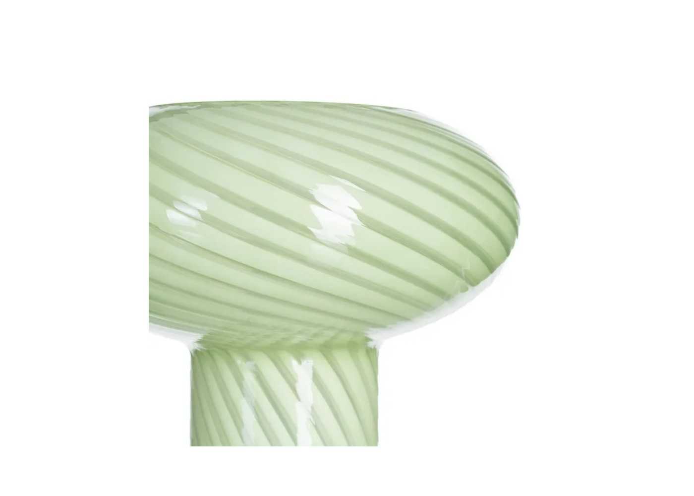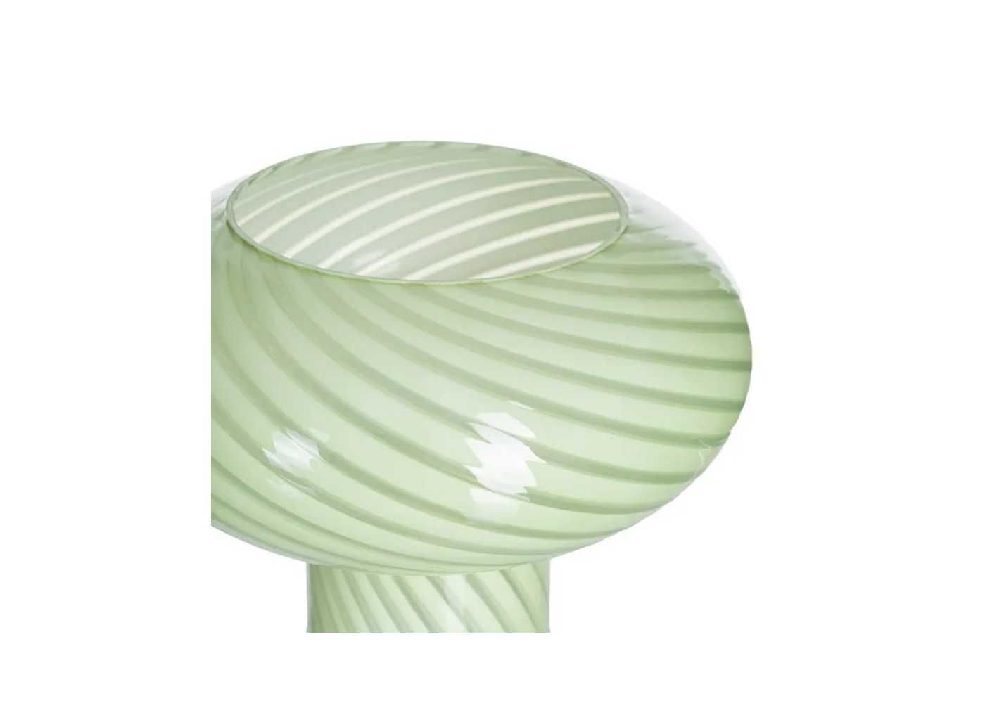 Original y elegante lámpara de mesa de cristal en color verde e interior en color blanco.