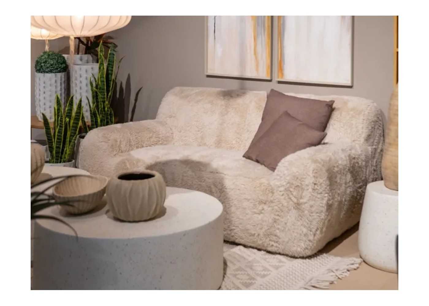 Cálido, confortable y calentito sofá de invierno tapizado en tejido poliéster 100% imitando el pelaje del oso.
