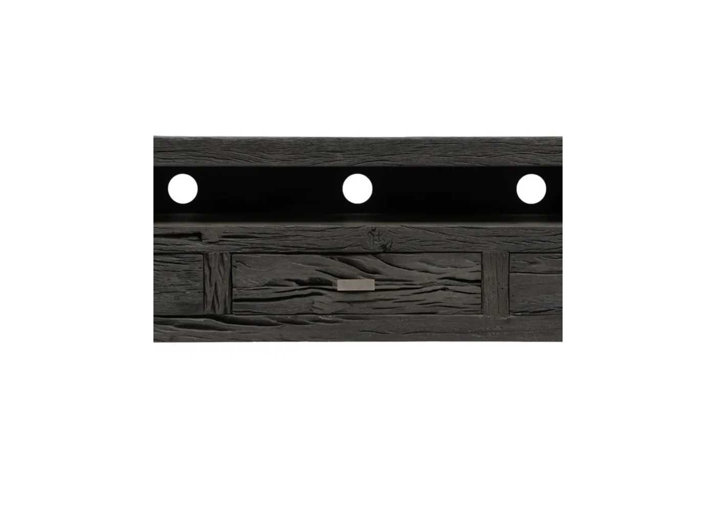 Mueble de TV de diseño moderno y rústico con hueco y tres cajones.