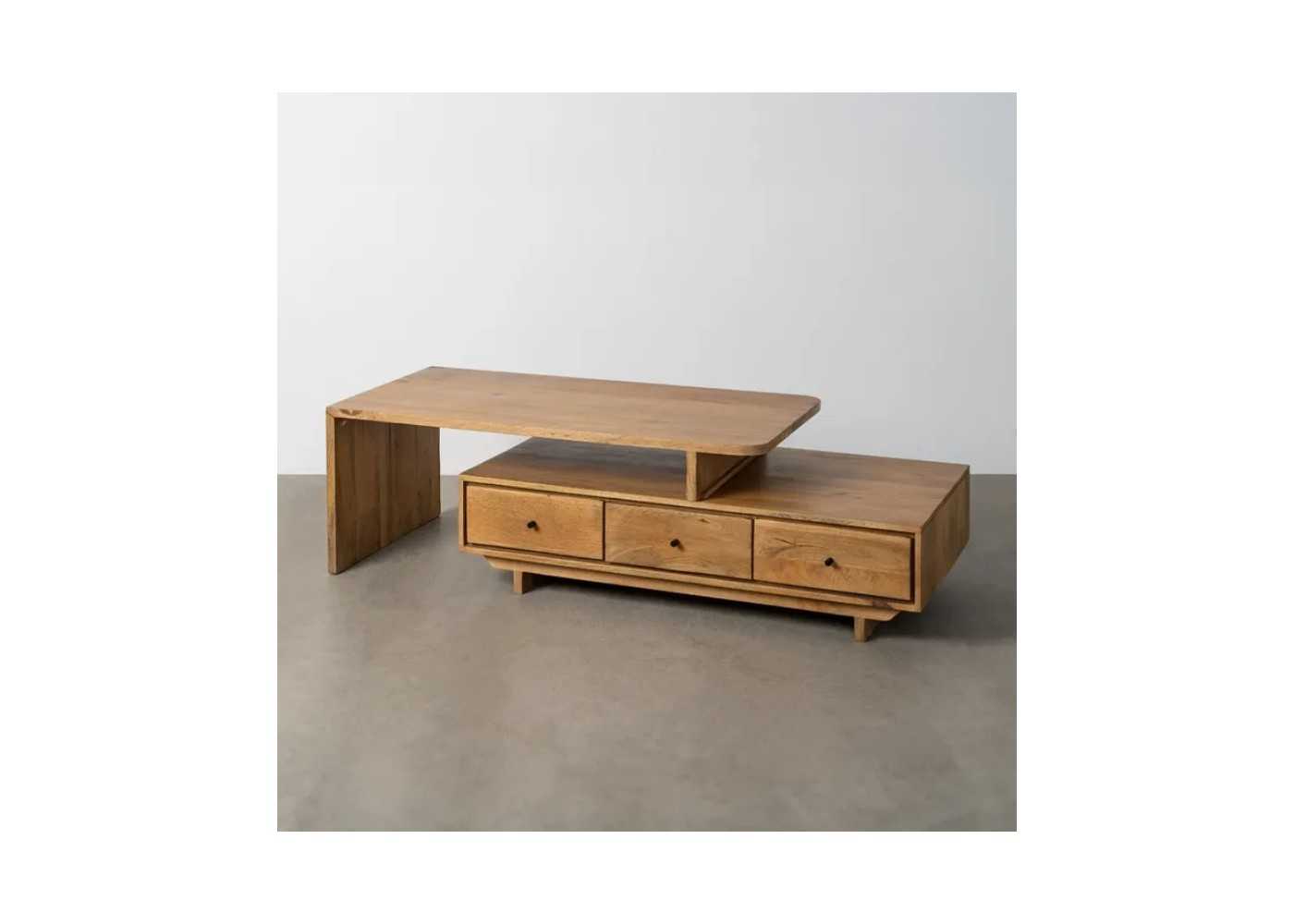 Mesa de centro de madera de mango con 3 cajones por cada lado.