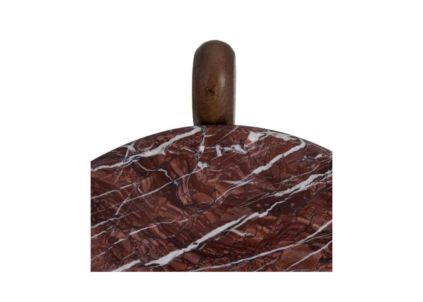 Elegante mesa de centro con estructura de madera maciza de mango color natural y tapa de mármol.