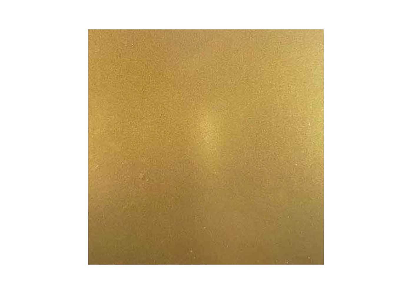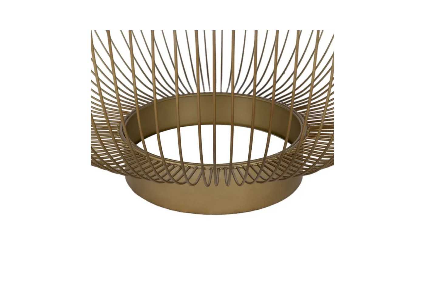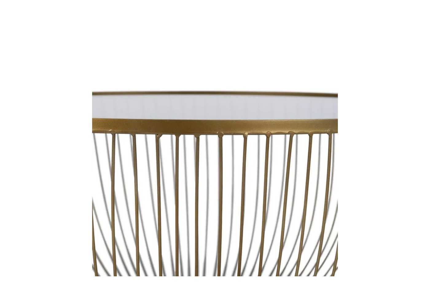 Mesa de centro redonda con tapa de cristal y original estructura de acero lacado oro mate.