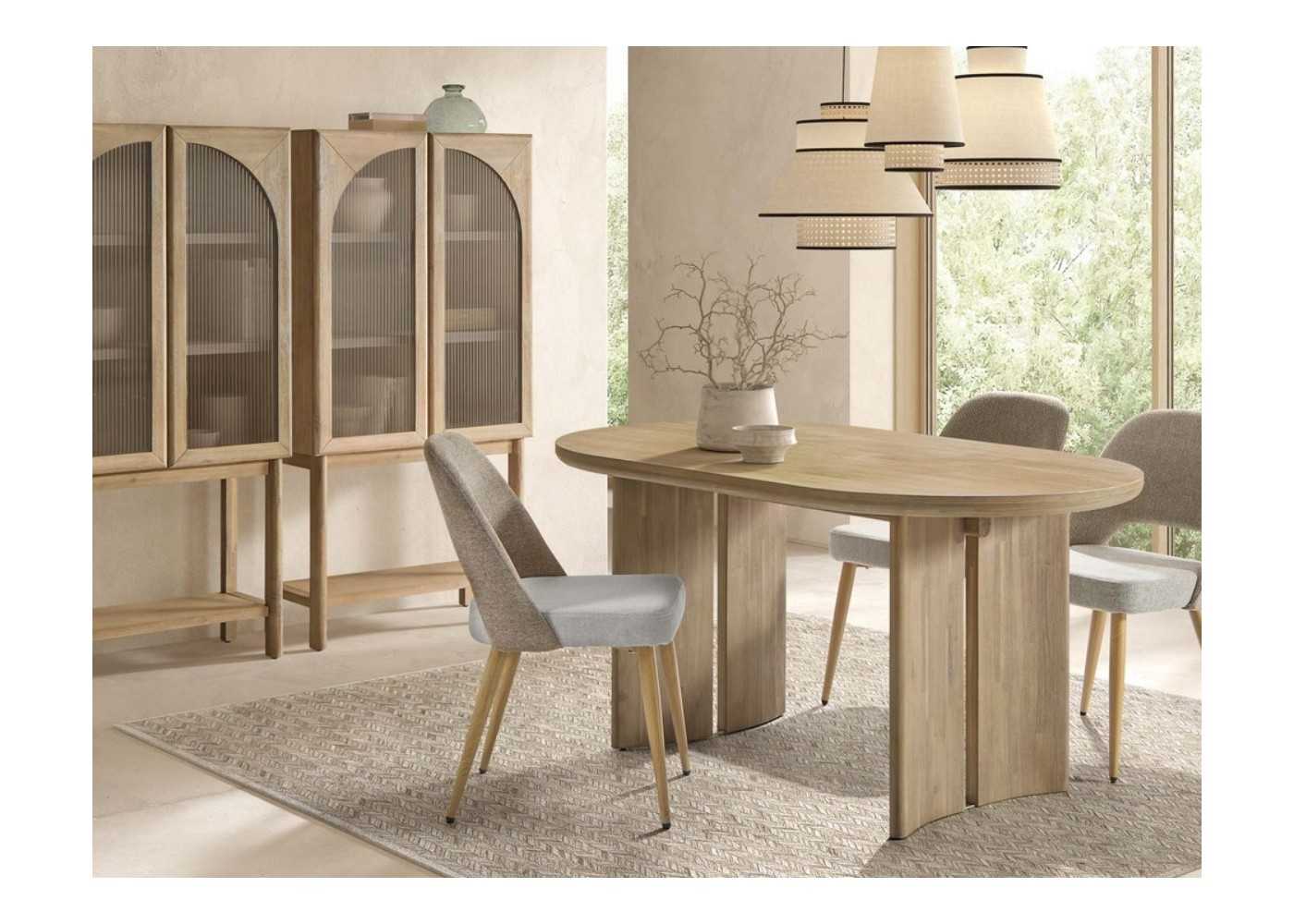 Esta vitrina está fabricado íntegramente en madera maciza de acacia, valorada por su resistencia, calidez estética y bajo impacto medioambiental.