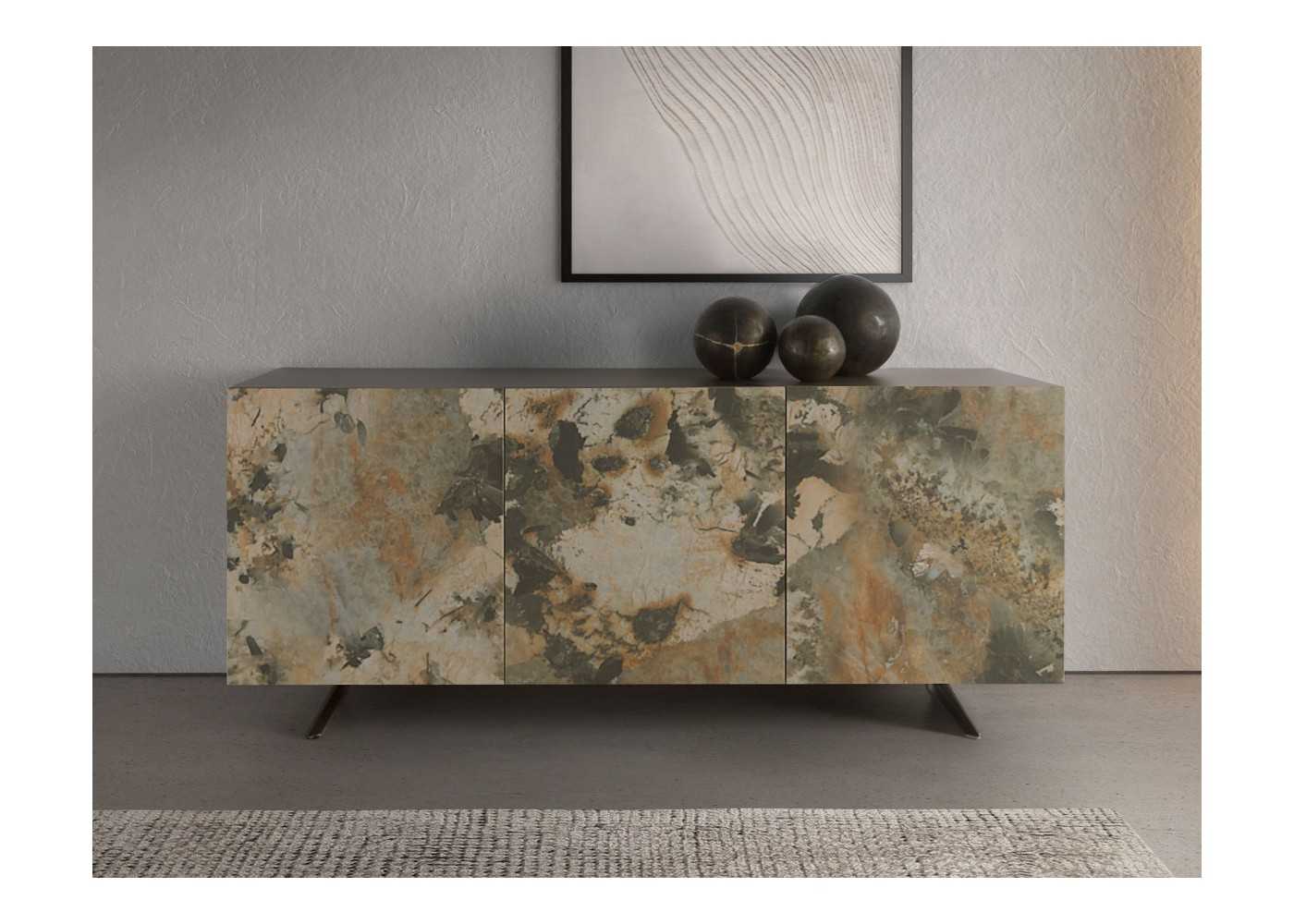 Aparador lacado con puertas de mármol porcelánico y patas en acero - AMAYA