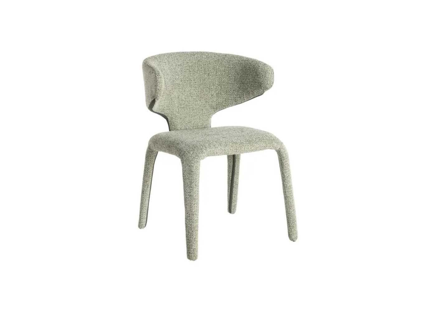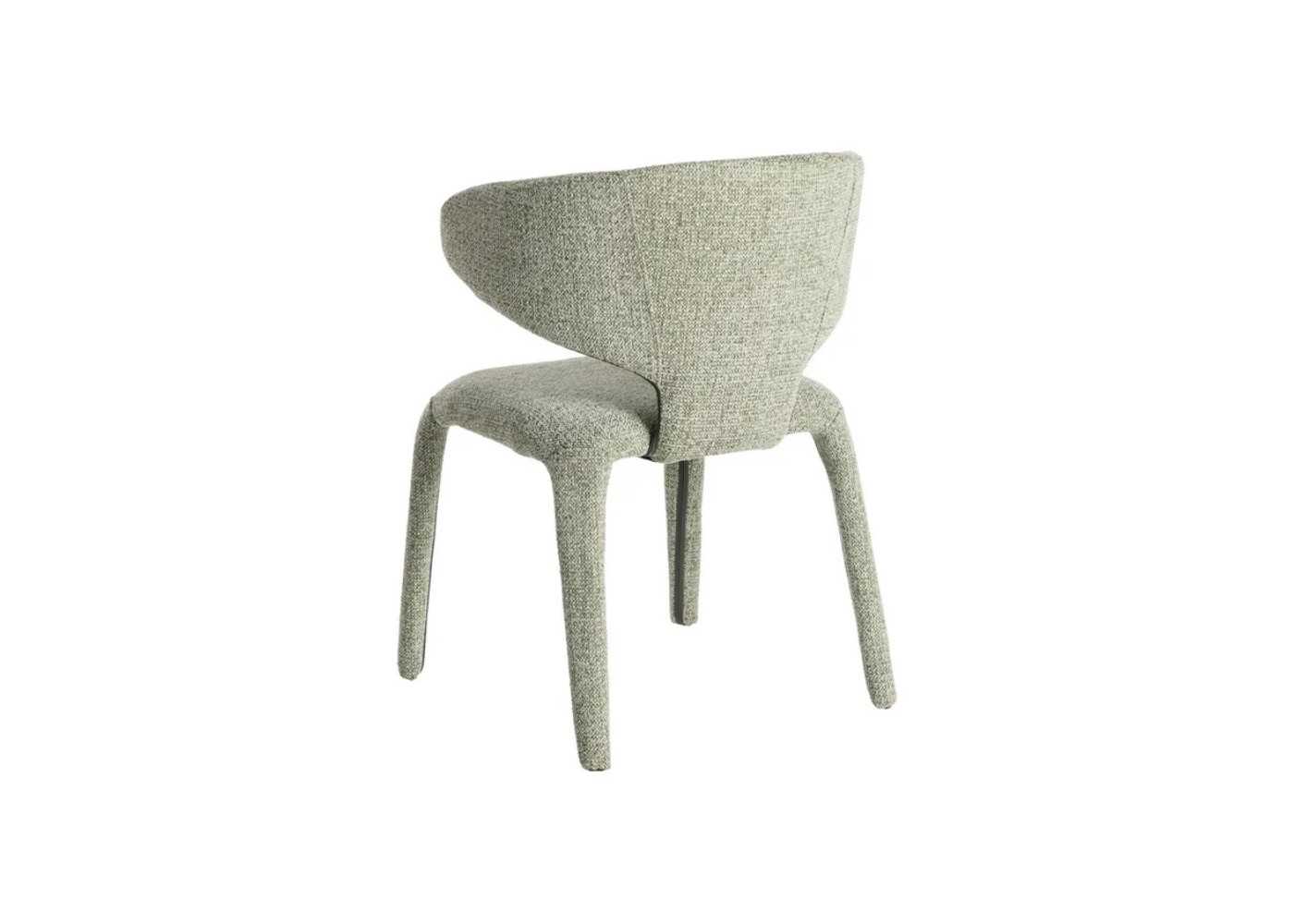 Original silla de diseño moderno totalmente tapizada en tela jaspeada color verde.