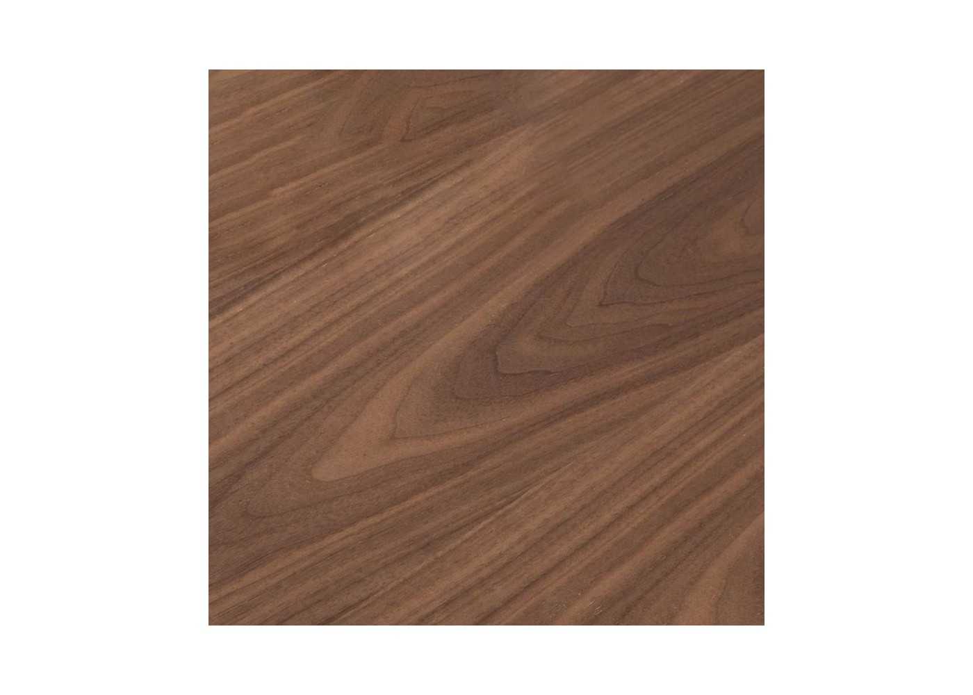 Estructura de acero inoxidable negro epoxi con 2 bandejas de madera maciza de fresno chapadas en nogal natural. Chapas naturales de 0,5 mm de espesor y de la más alta calidad.