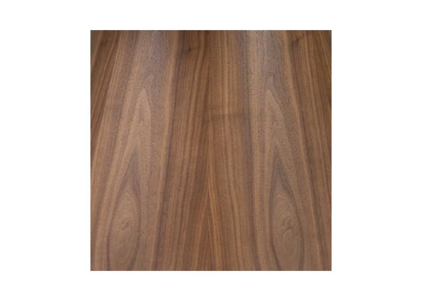 Pata central de forma cónica fabricada en madera de fresno chapada en nogal con chapas naturales de la más alta calidad.