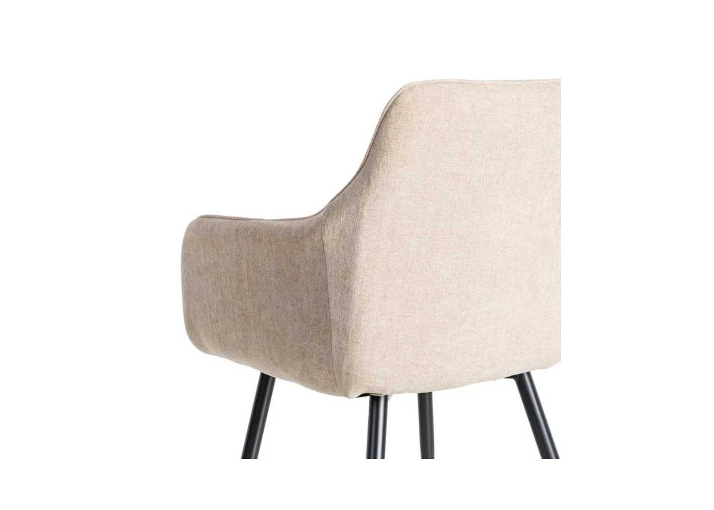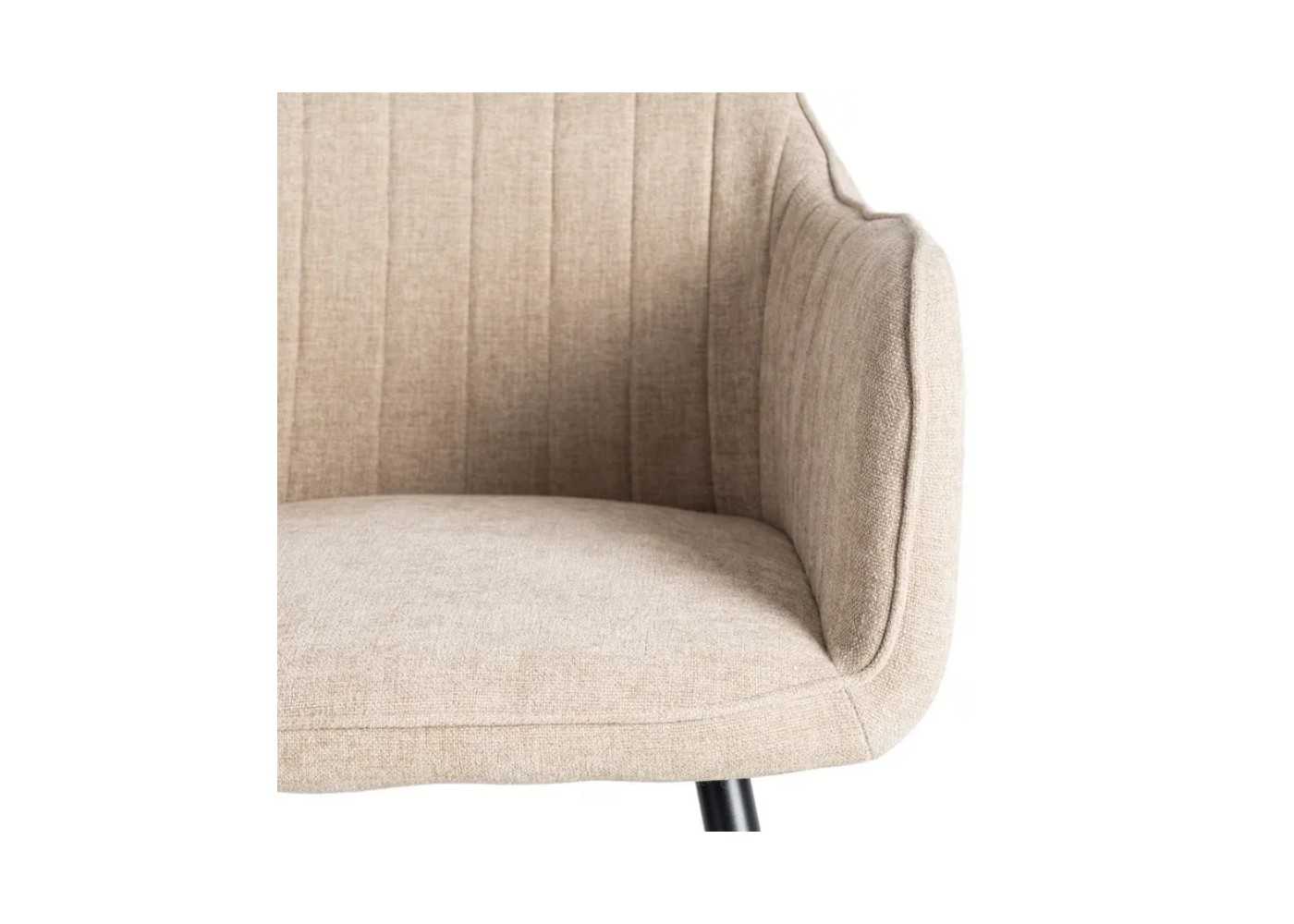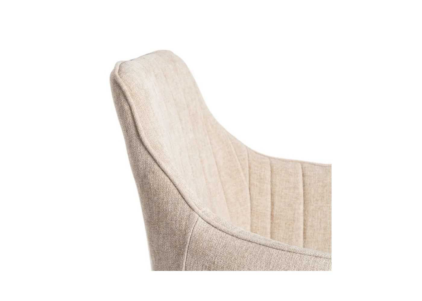 Confortable silla con brazos de diseño envolvente y moderno tapizada en resistente tela 100% poliéster de la más alta calidad en color beige de 320 gr/m2 de densidad.
