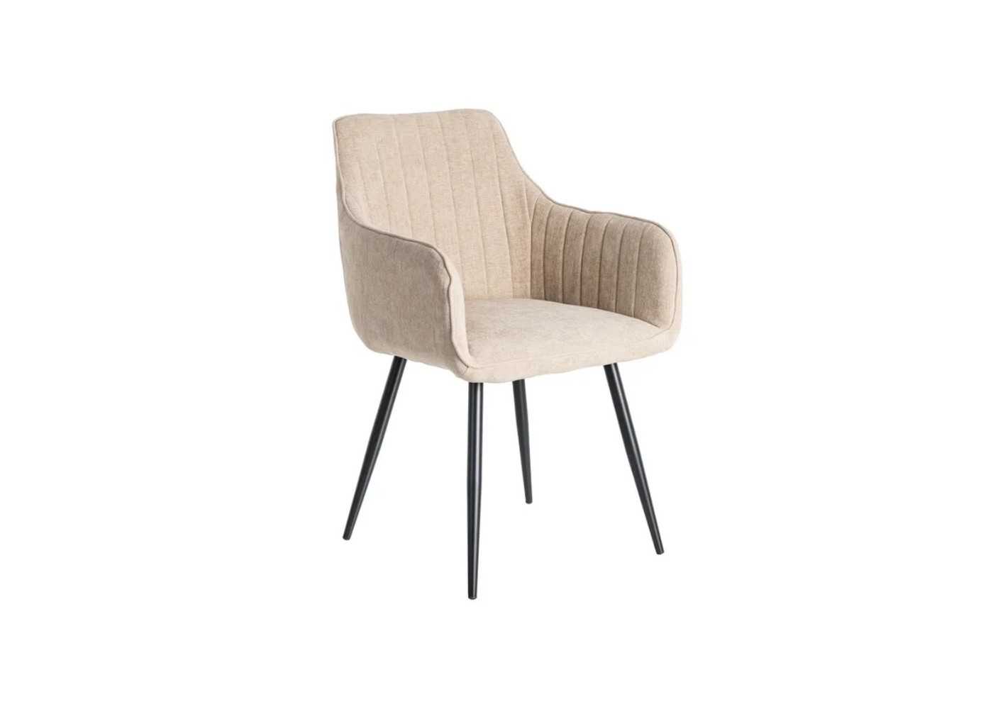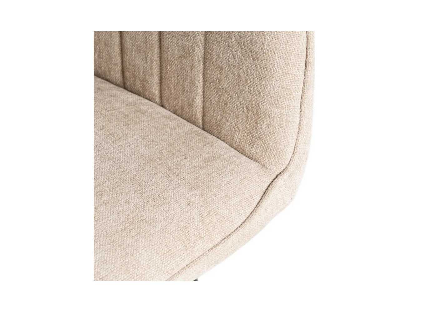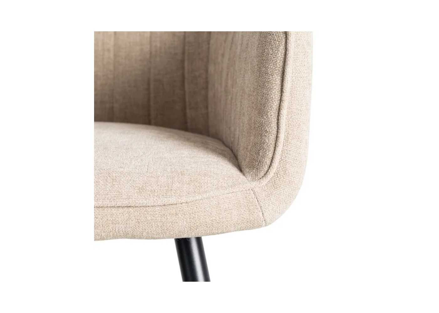Confortable silla con brazos de diseño envolvente y moderno tapizada en resistente tela 100% poliéster de la más alta calidad en color beige de 320 gr/m2 de densidad.