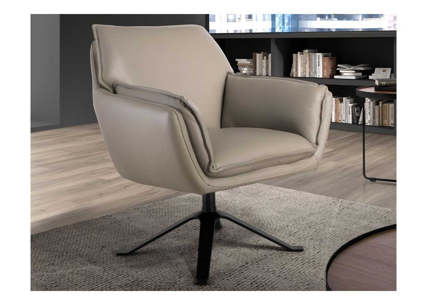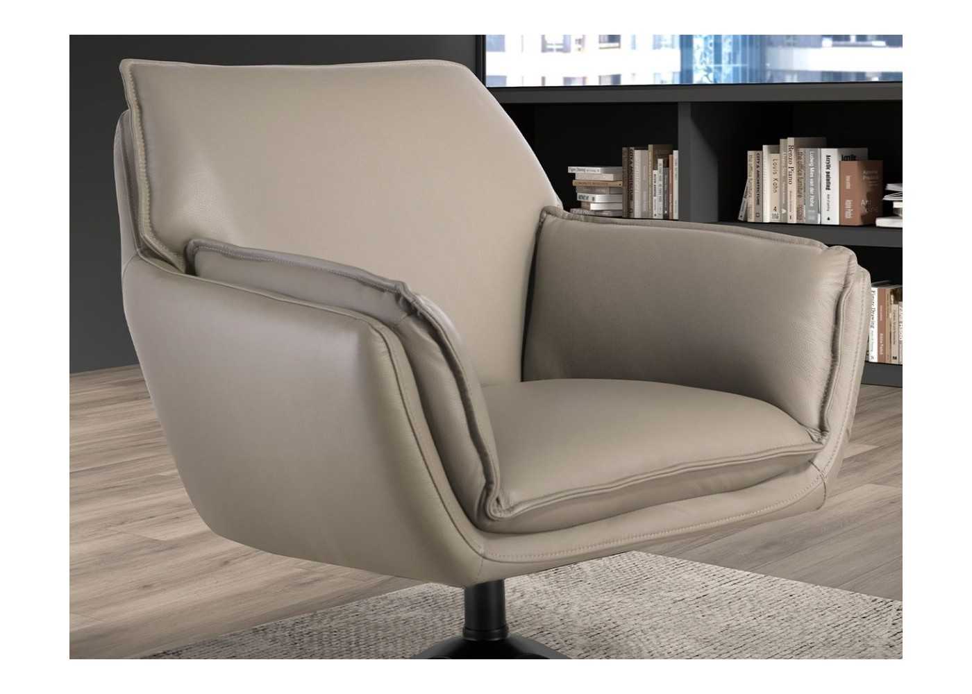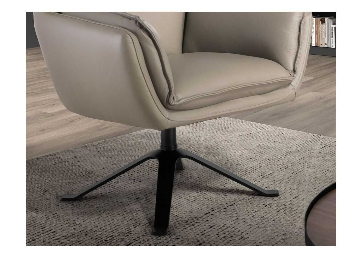 Sillón giratorio de diseño tapizado en piel genuina - ARTH