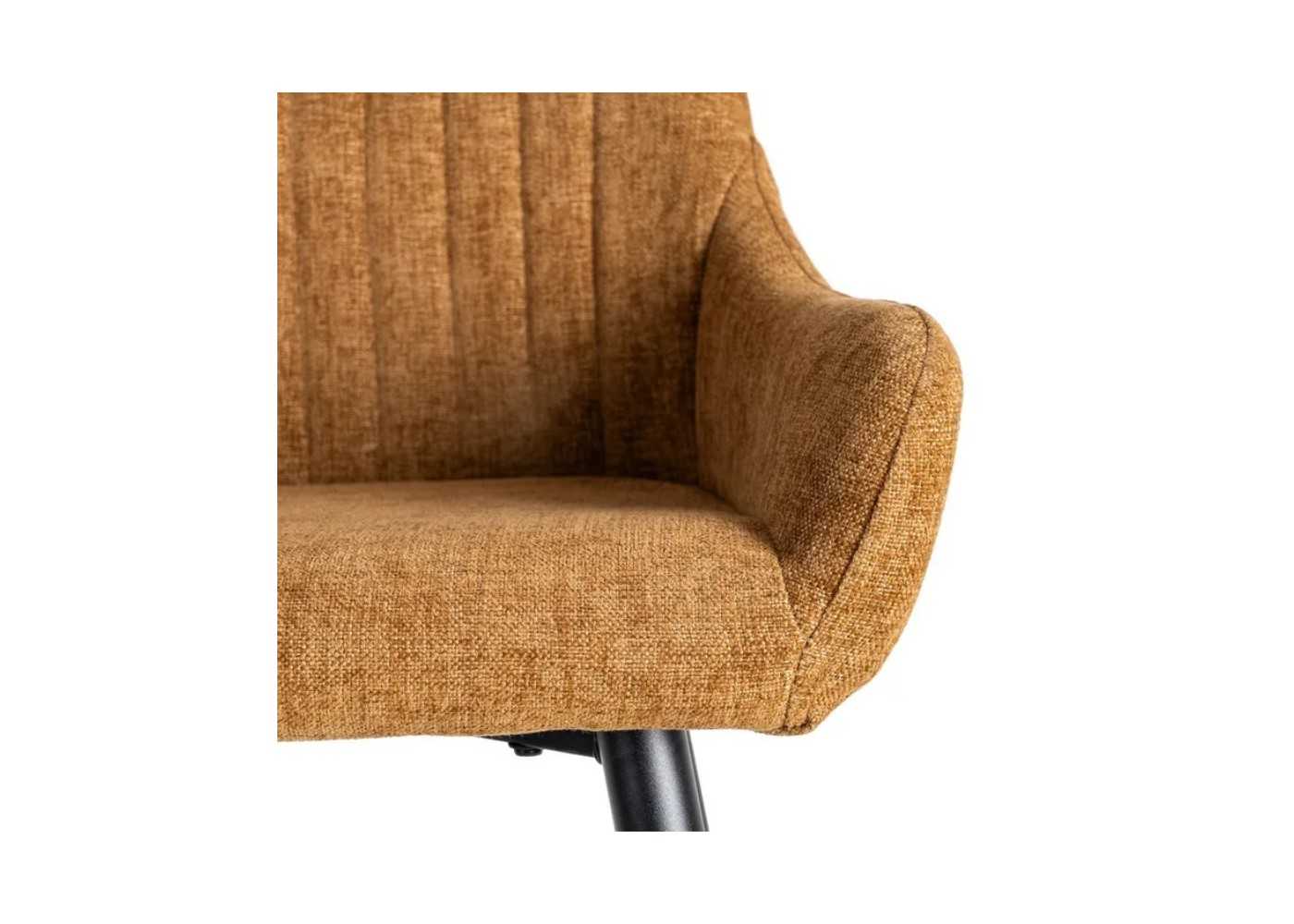 Confortable taburete con brazos de diseño envolvente y moderno tapizada en resistente tela 100% poliéster de la más alta calidad en color MARRÓN de 320 gr/m2 de densidad.