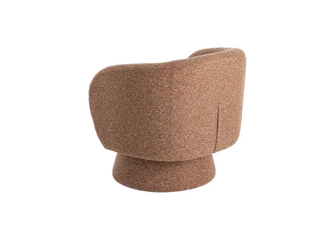 Original sillón giratorio de diseño moderno tapizado en tela jaspeada color salmón.