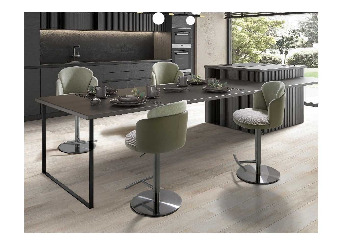 Taburete de diseño moderno tapizado en tela con patas de acero inoxidable - ABACO ROND