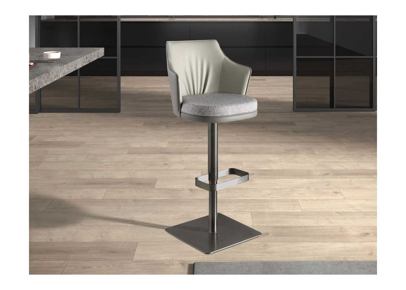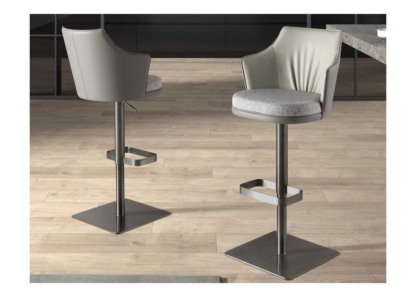Elegante, sofisticado y confortable taburete giratorio con reposabrazos.