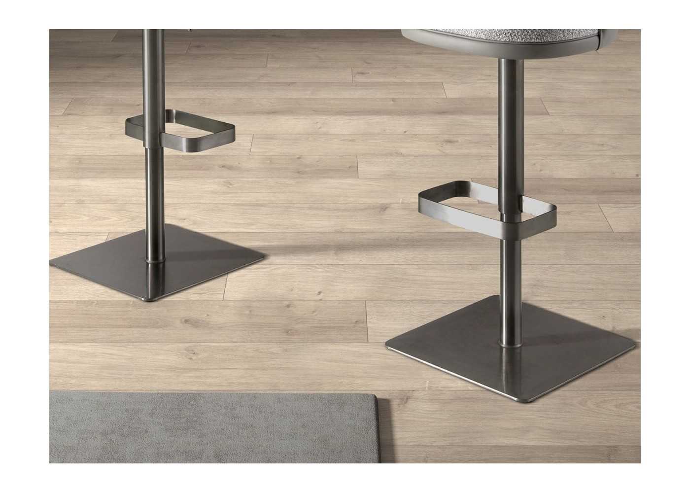 Robusta , sólida y estable estructura y base de acero inoxidable pulido oscurecido con reposapiés integrado.