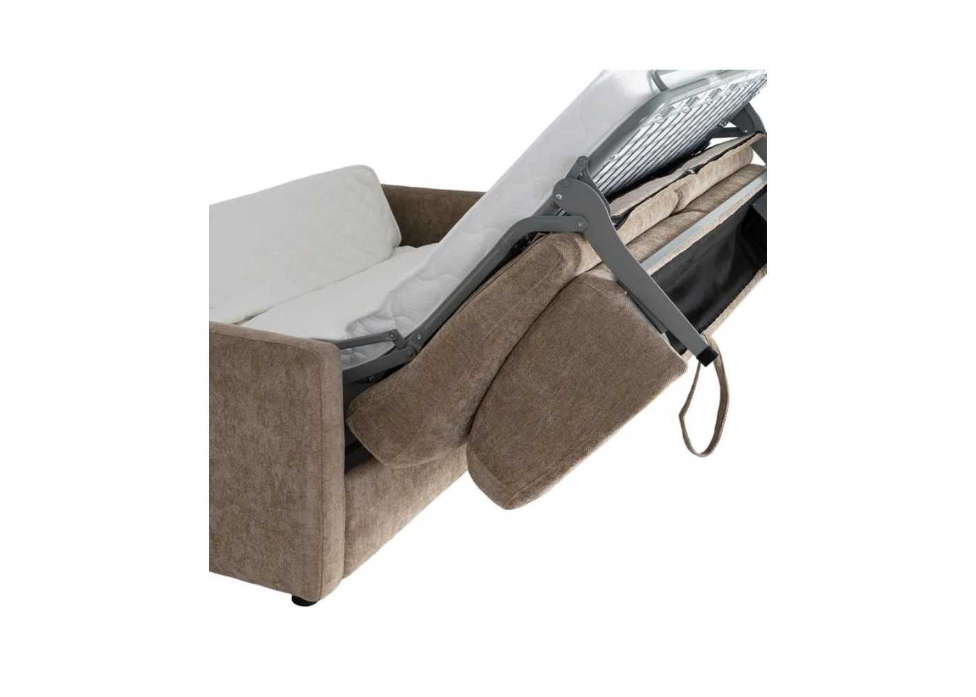 Sofá cama tapizado en tela color TAUPE.