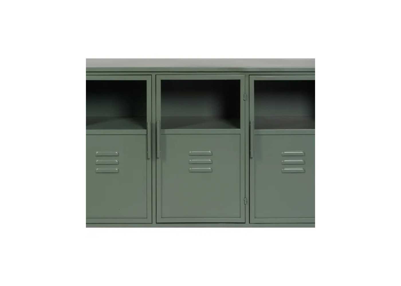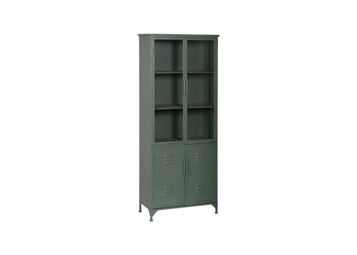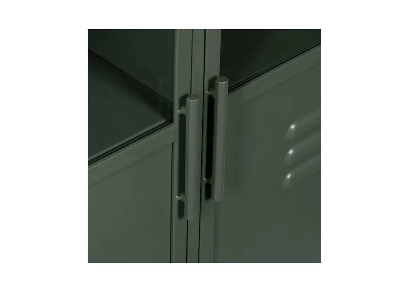 Vitrina para oficina de diseño retro e industrial con puertas y cristal fabricado en hierro lacado verde menta.