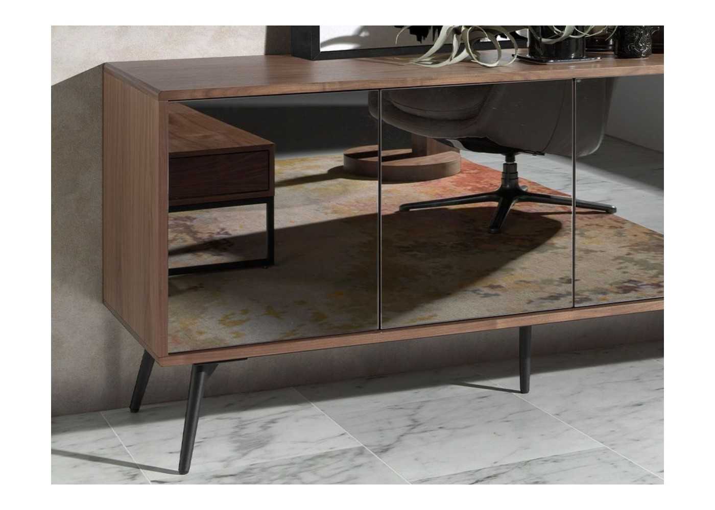Buffet en noyer, verre noir et piètement en acier inoxydable - MICHIGAN
