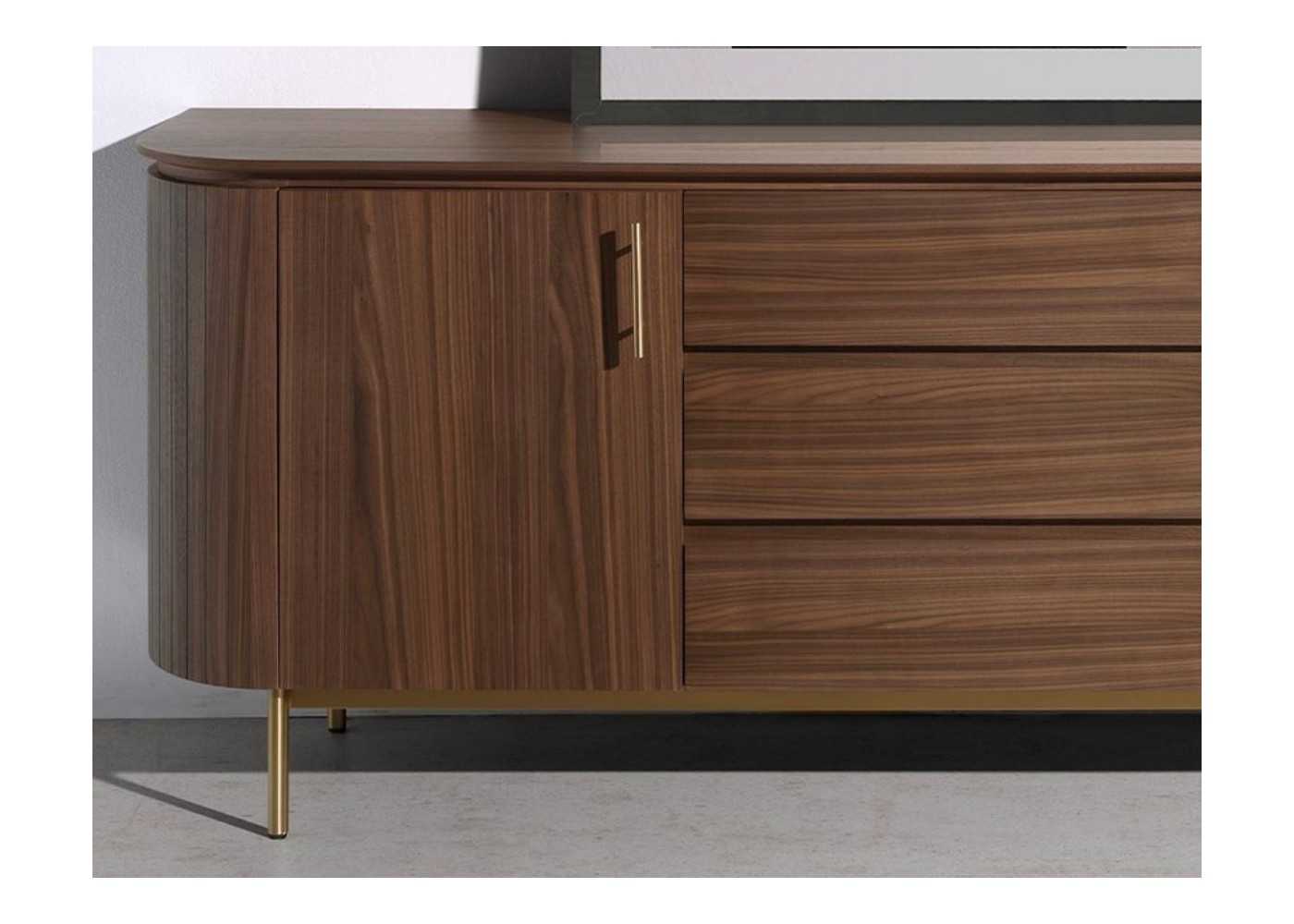 Buffet élégant, polyvalent et fonctionnel aux lignes arrondies avec une structure en bois de frêne plaqué noyer de 0,5 mm d'épaisseur.
