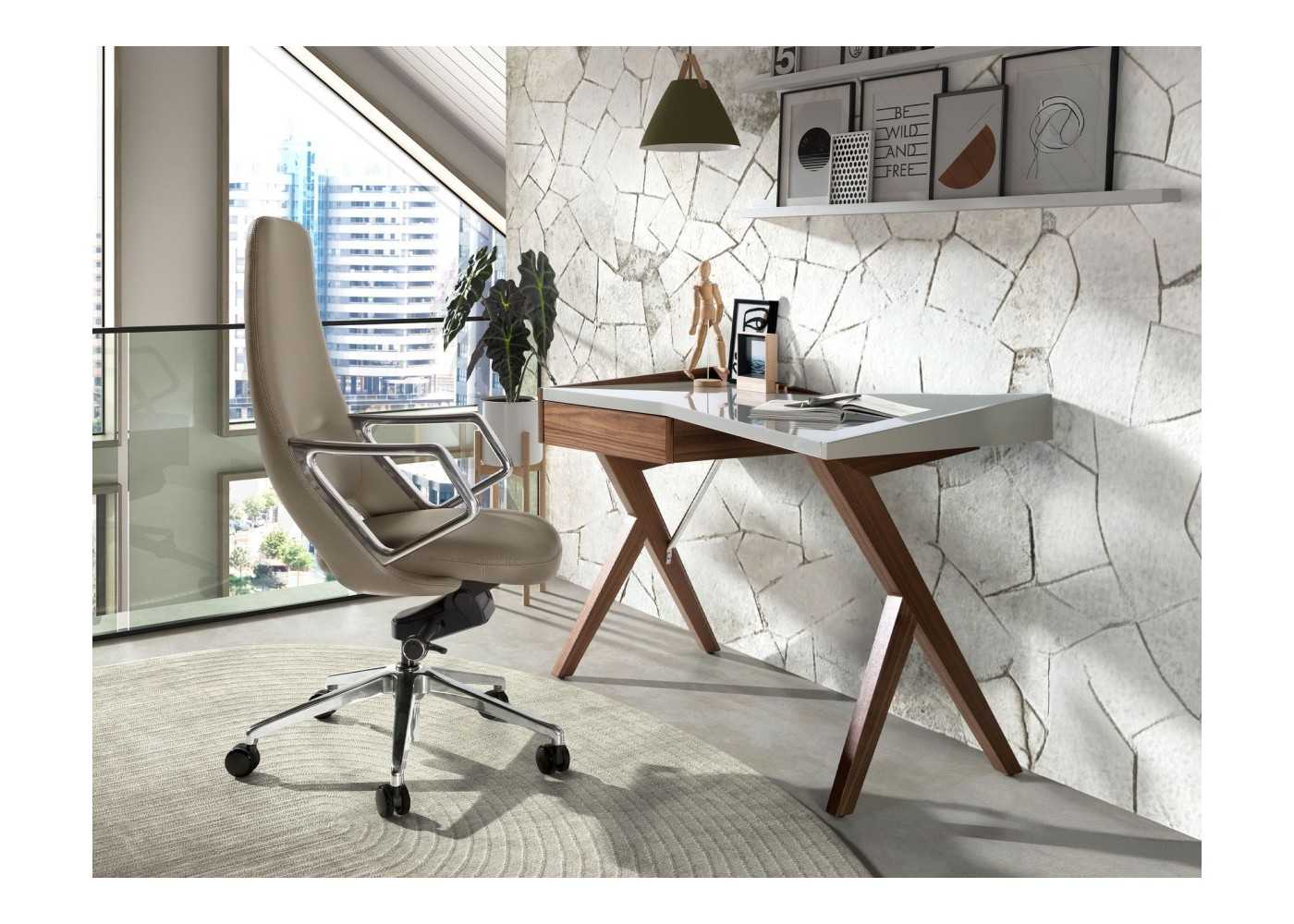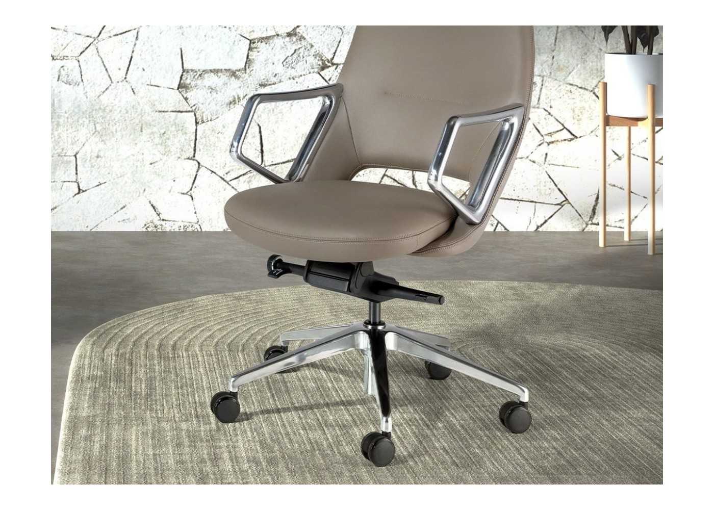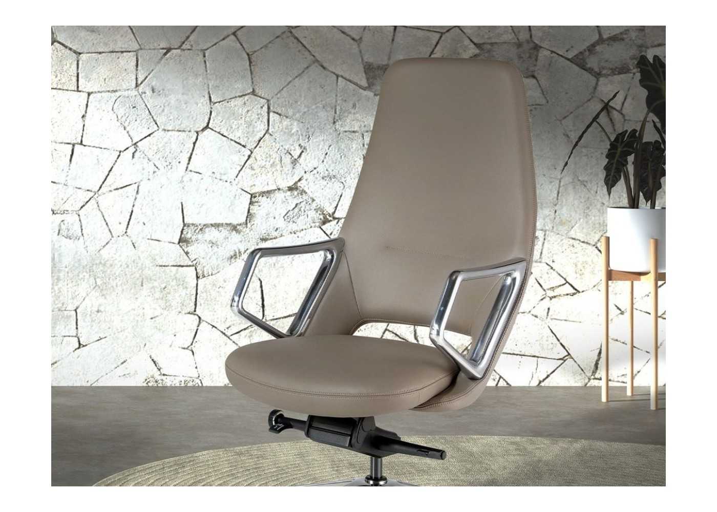 Fauteuil de bureau pivotant élégant, fonctionnel, ergonomique et innovant, au design moderne, avec accoudoirs.
