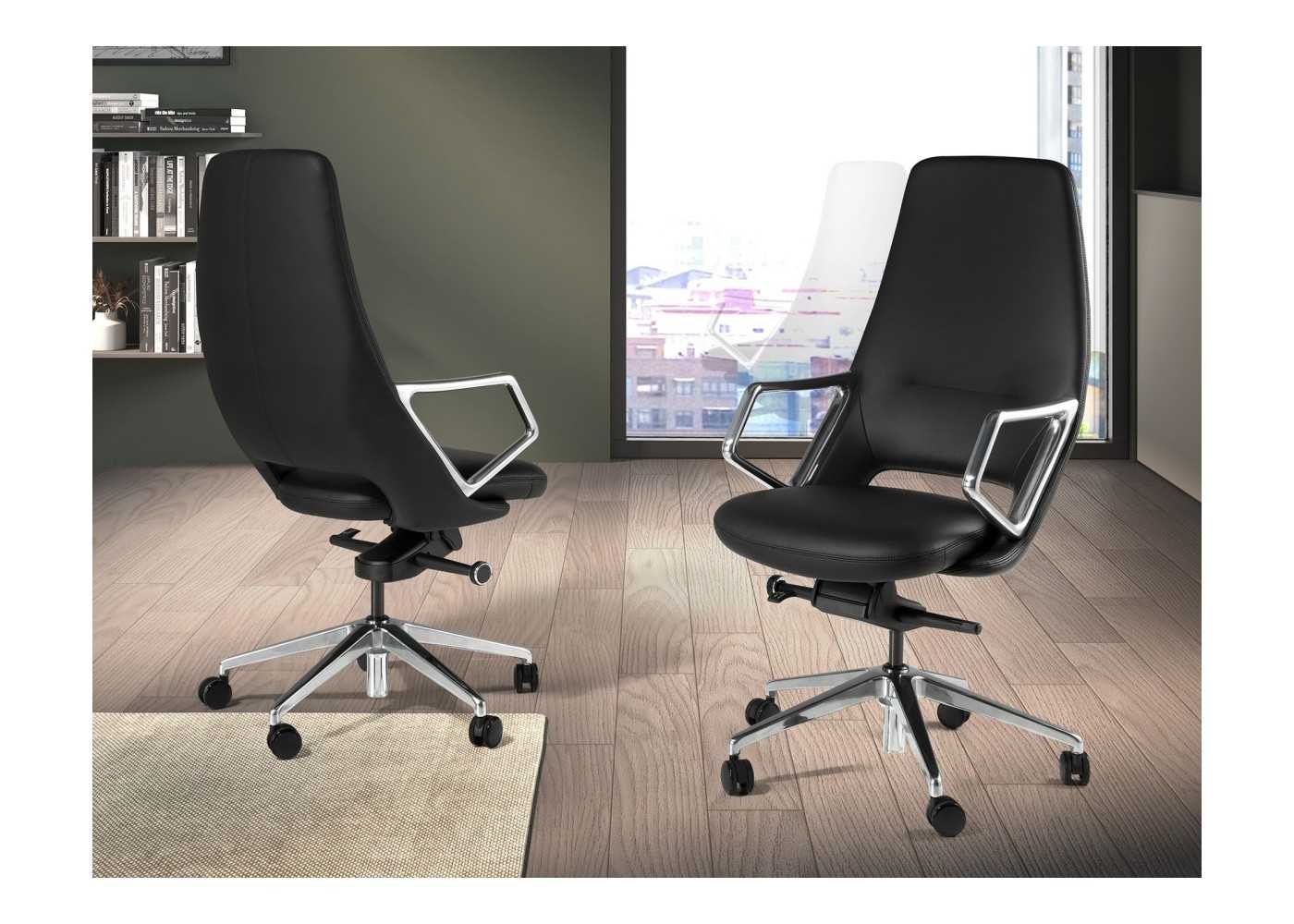 Fauteuil de bureau pivotant élégant, fonctionnel, ergonomique et innovant, au design moderne, avec accoudoirs.