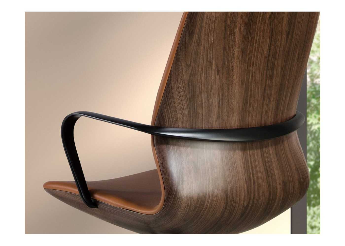 Structure extérieure originale en placage noyer naturel (placages de la plus haute qualité) moulée de façon ergonomique, faisant de ce fauteuil une pièce unique.