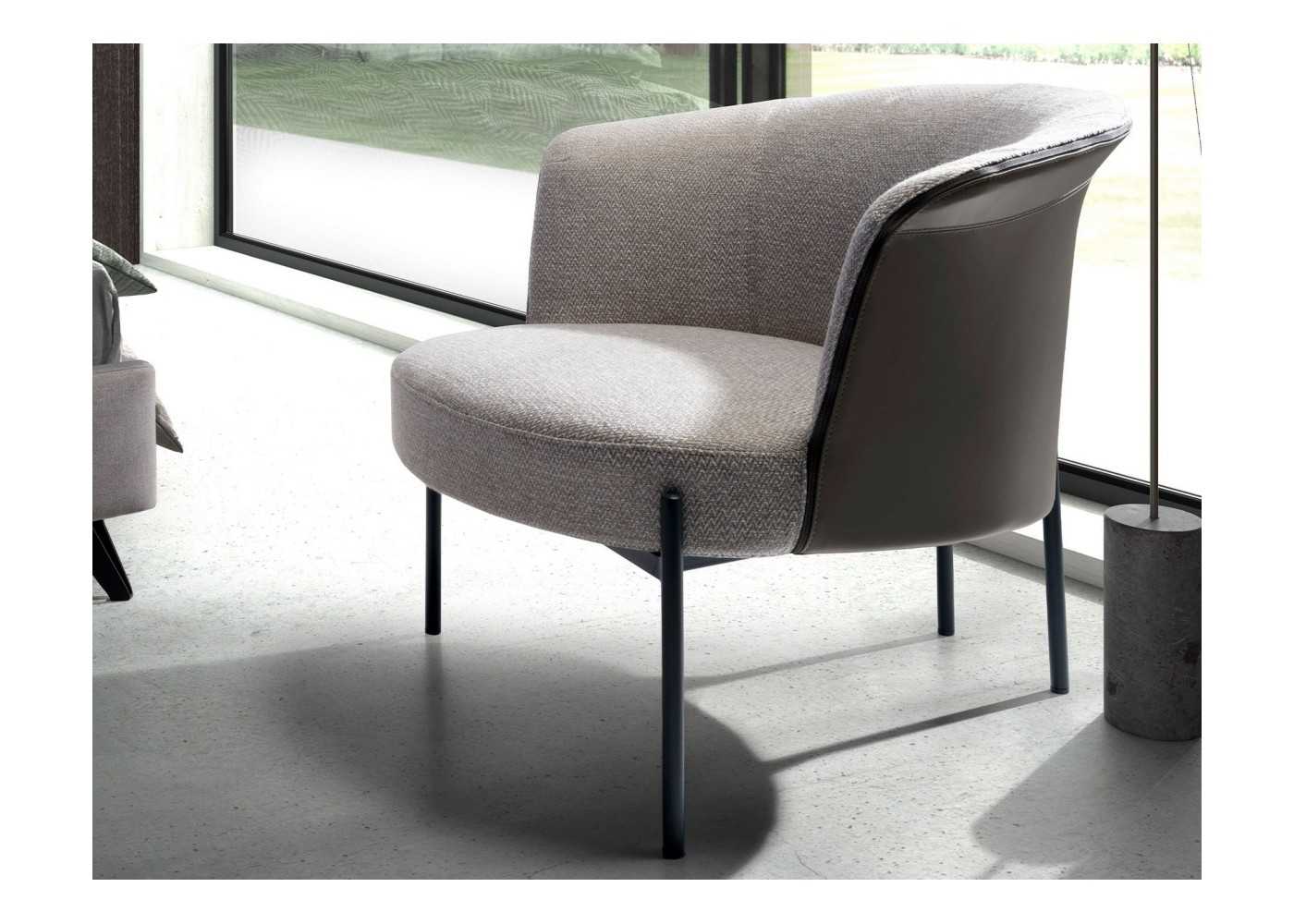 Fauteuil tapissé de tissu avec une structure en acier inoxydable laqué noir - GEORGE