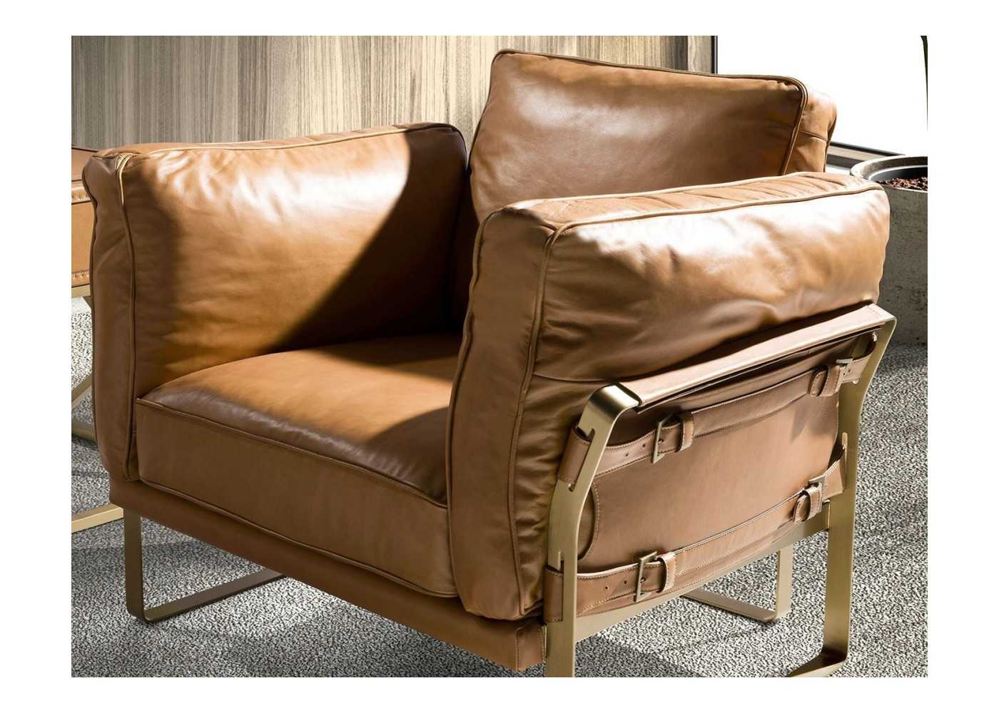 Fauteuil Chesterfield classique, tapissé de cuir véritable et monté sur roulettes - ARIANO