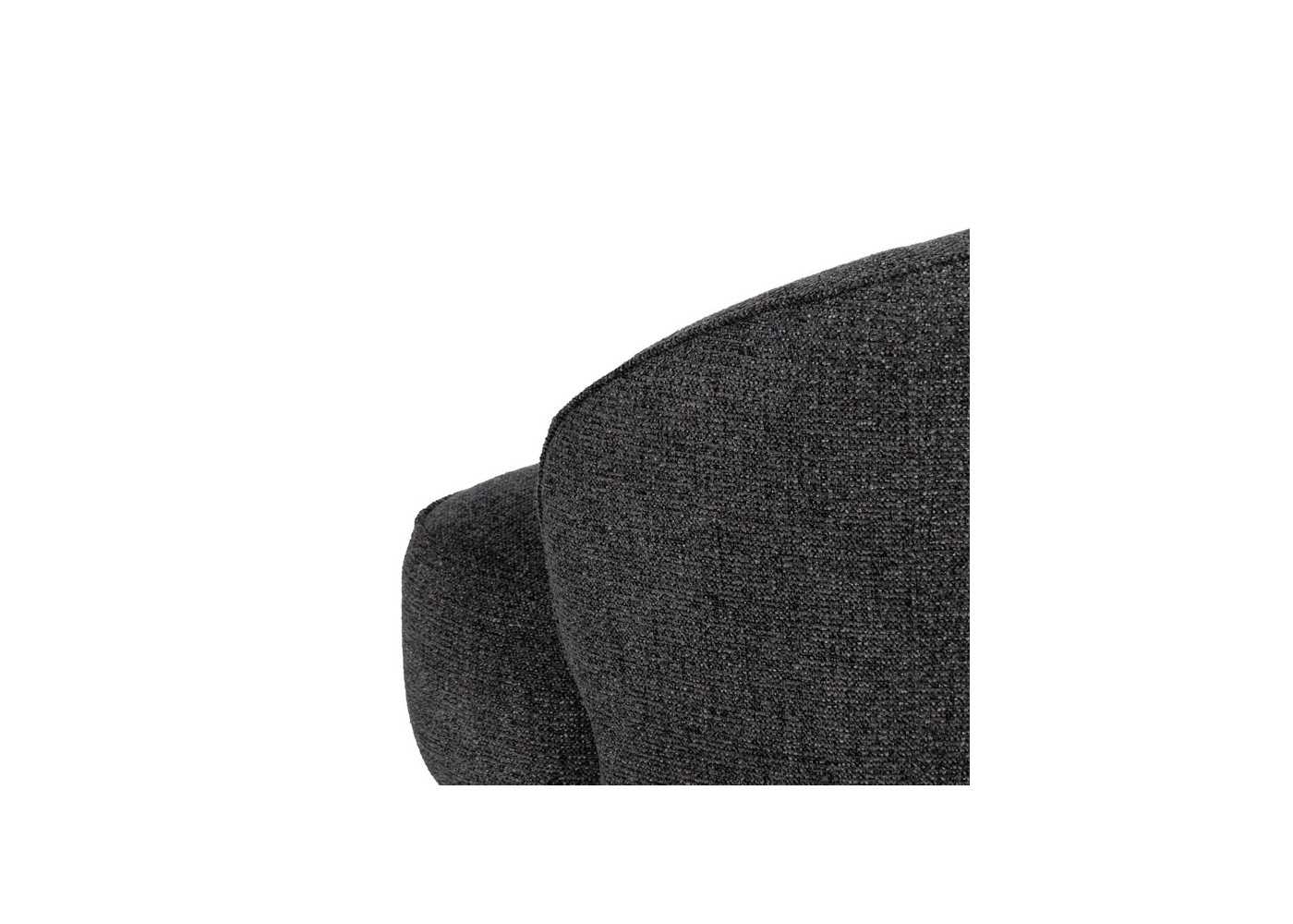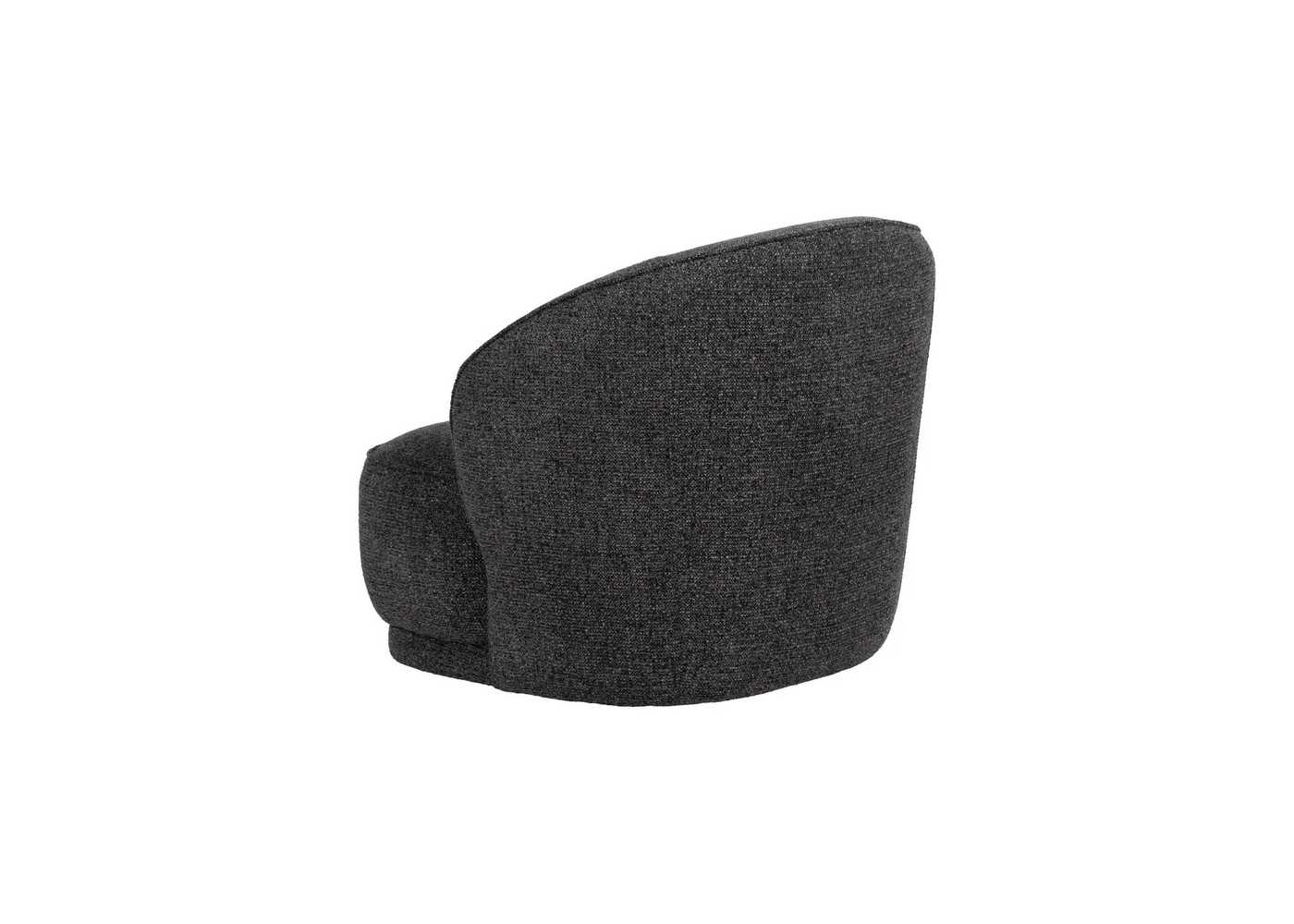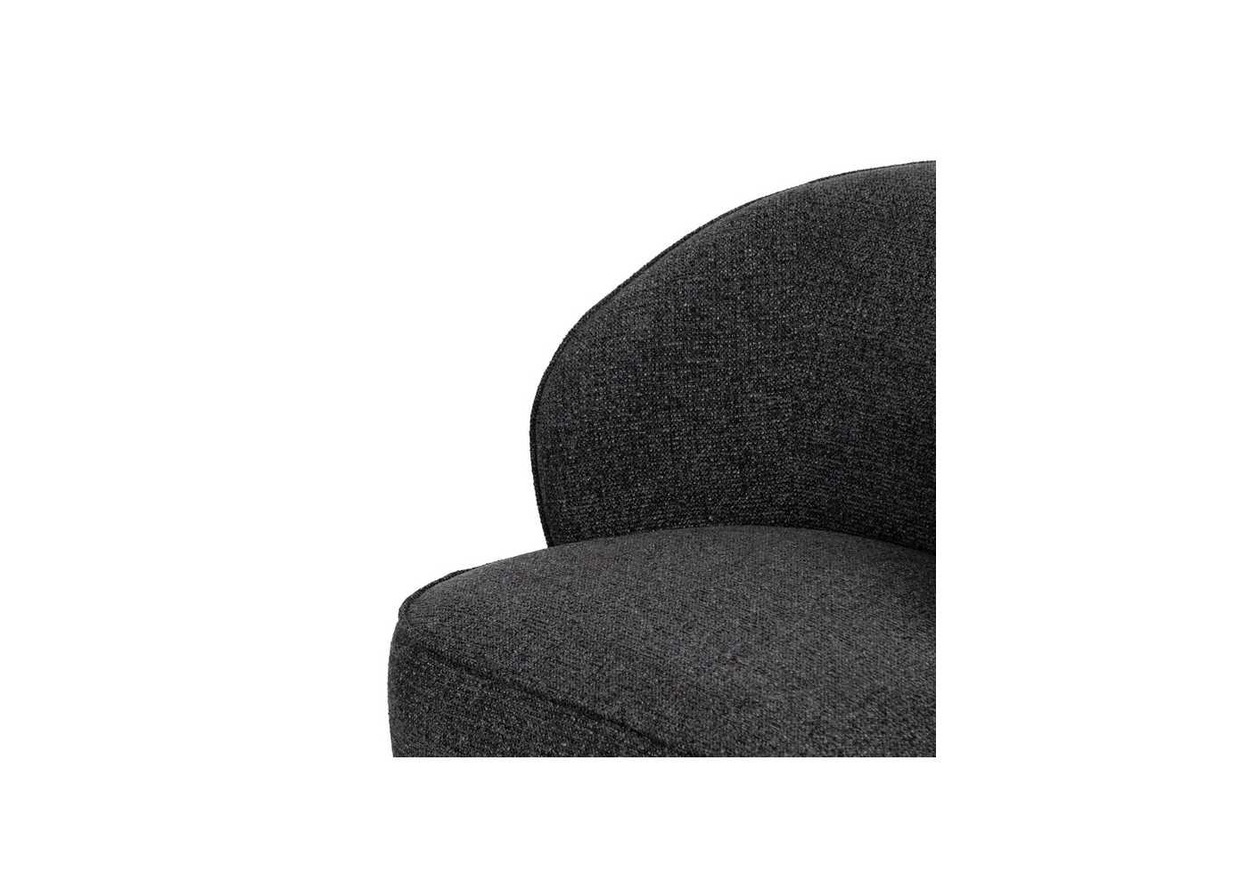 Fauteuil confortable et élégant avec une assise monobloc aux lignes arrondies et sans accoudoirs, tapissé de tissu panaché gris avec pieds en bois de pin noir.