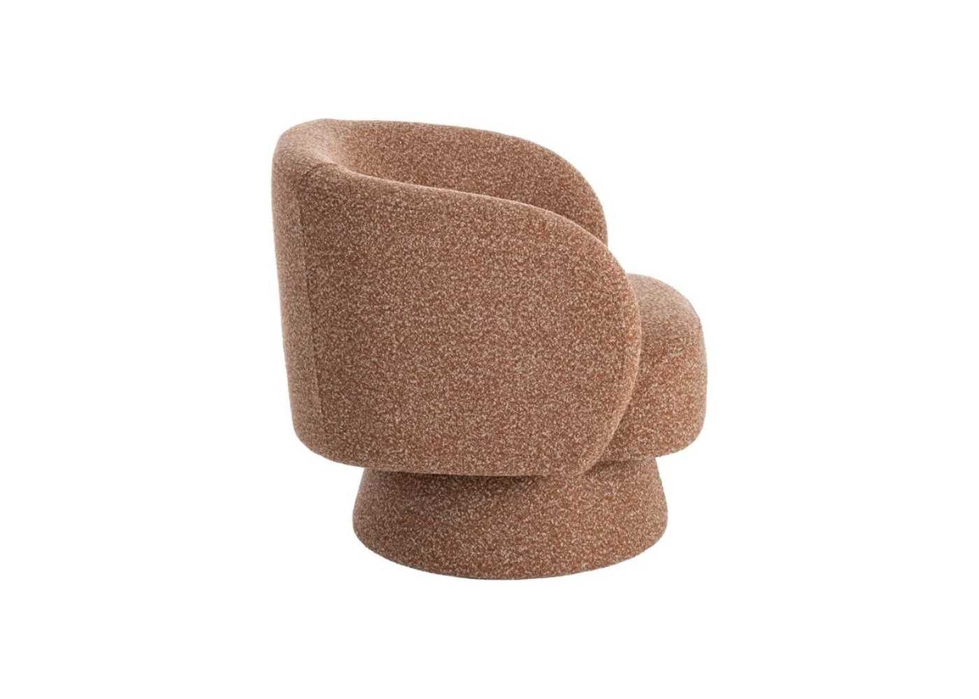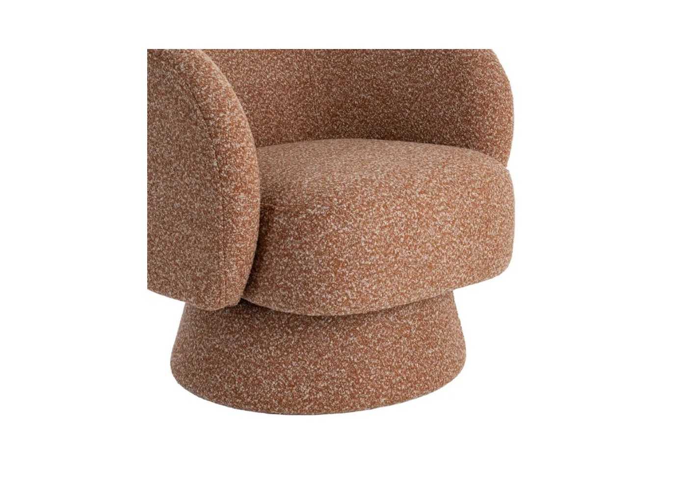 Fauteuil pivotant au design moderne original, tapissé d'un tissu chiné couleur saumon.