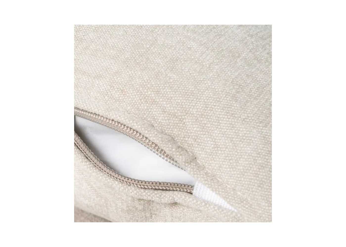 Tapissé artisanal en tissu velours résistant de couleur crème, composé à 97 % de polyester et à 3 % de lin, offrant une texture douce et chaleureuse et un entretien facile.