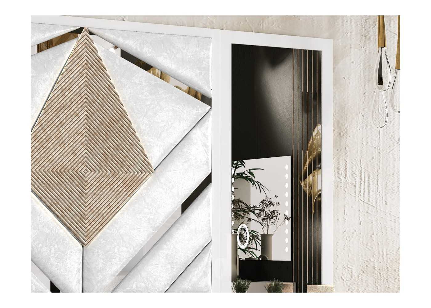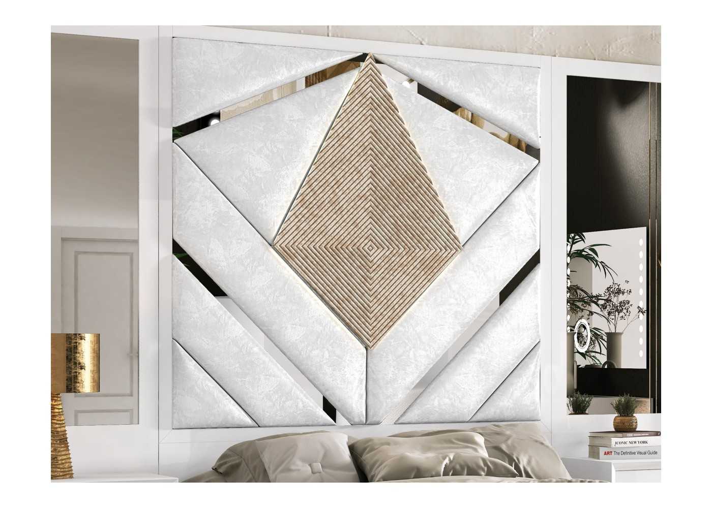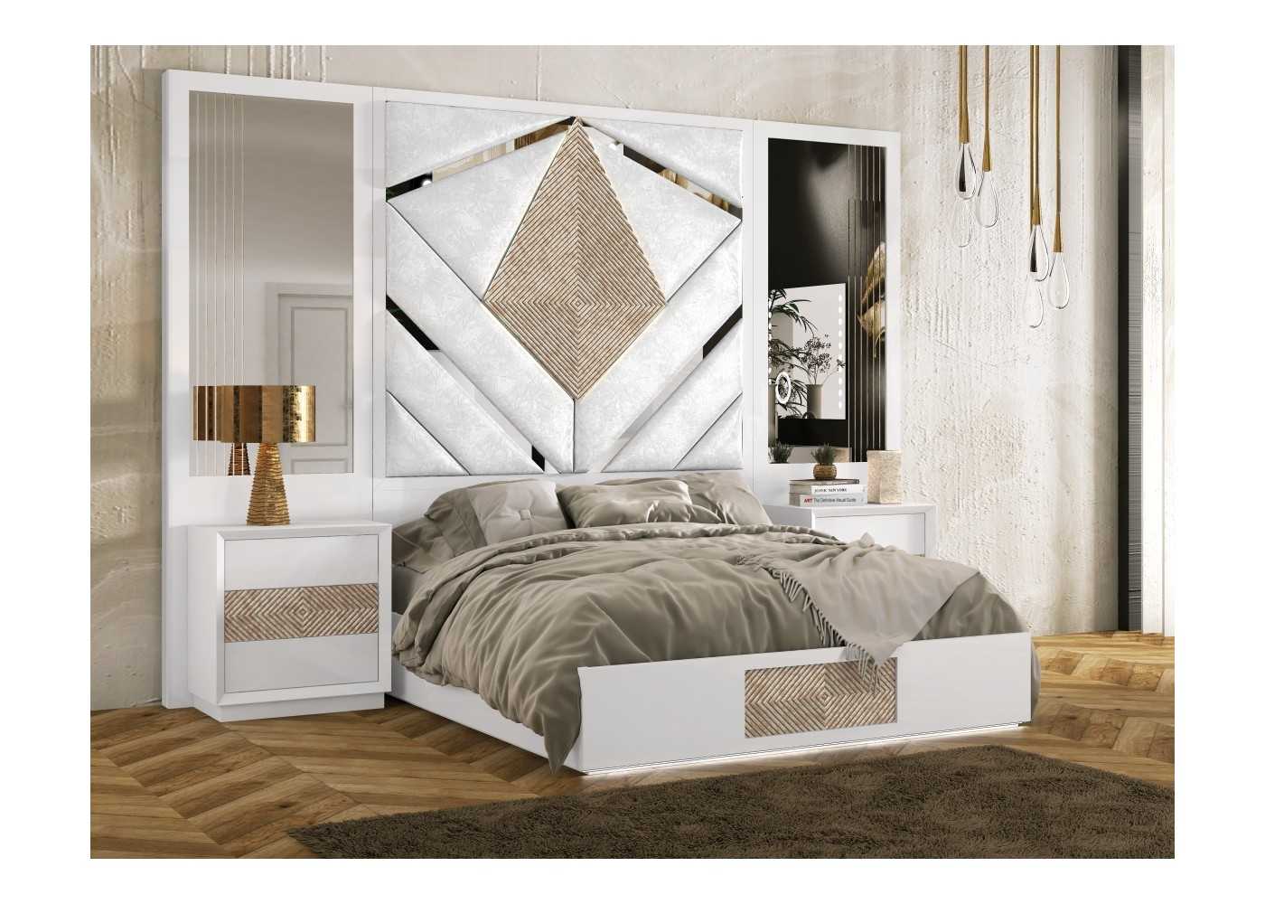 Lit complet avec tête de lit XXL tapissé et laquée au design moderne - GINETTE