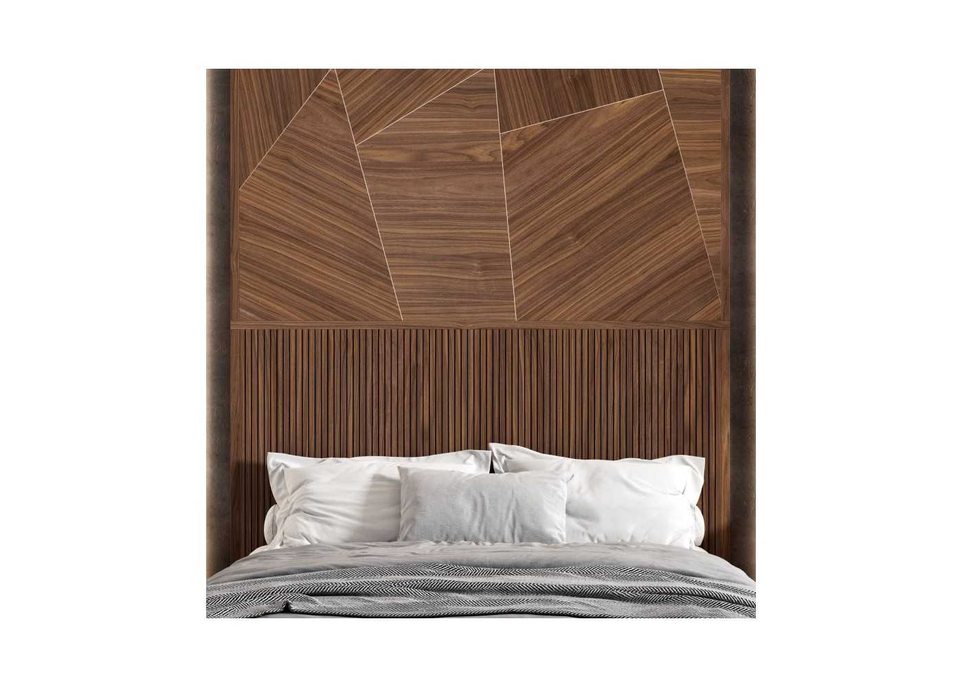 Tête de lit de 270 cm de haut, élégante et chaleureuse, au design moderne.