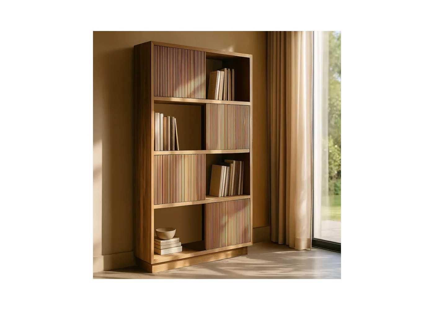 8 compartiments de rangement avec 4 portes coulissantes et des façades originales à lattes.