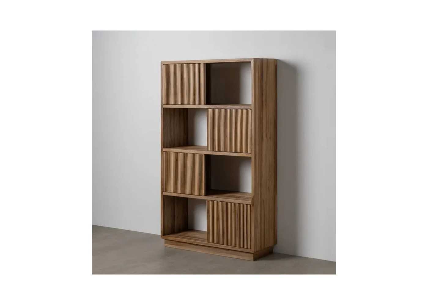 Étagère pratique et fonctionnelle en bois massif de TECK recyclé avec 4 portes coulissantes et 8 compartiments de rangement.