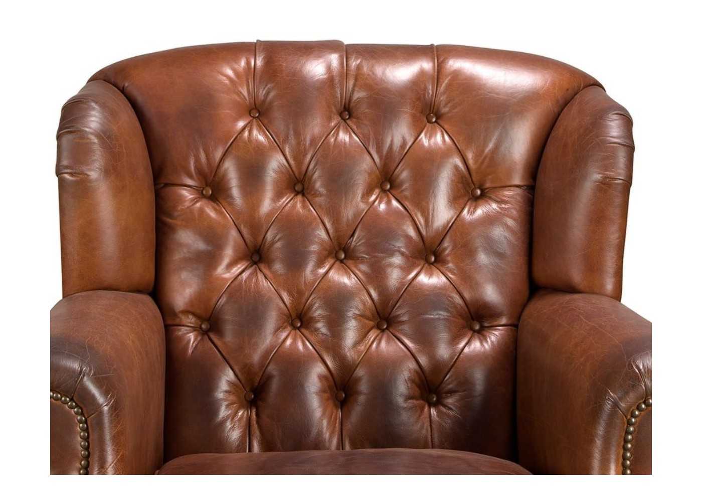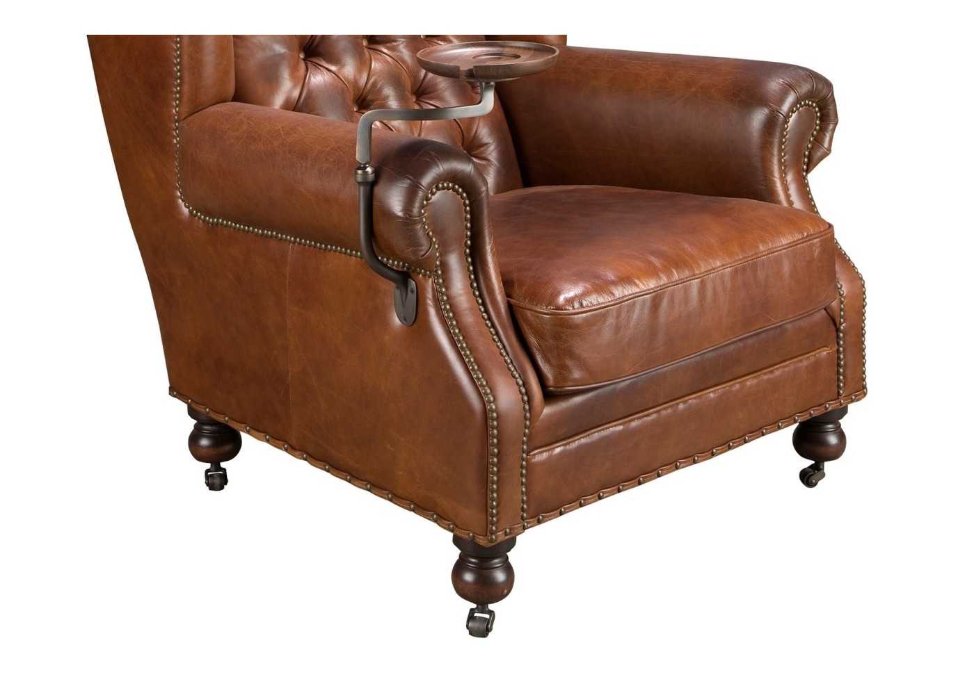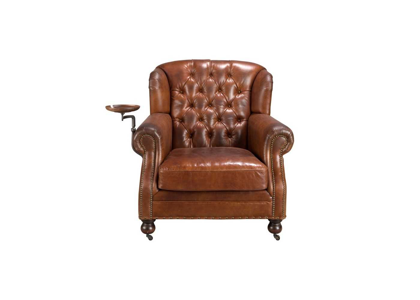 Fauteuil Chesterfield classique, tapissé de cuir véritable et monté sur roulettes - ARIANO
