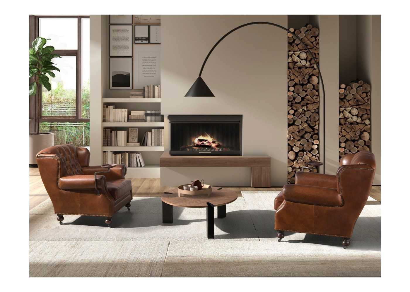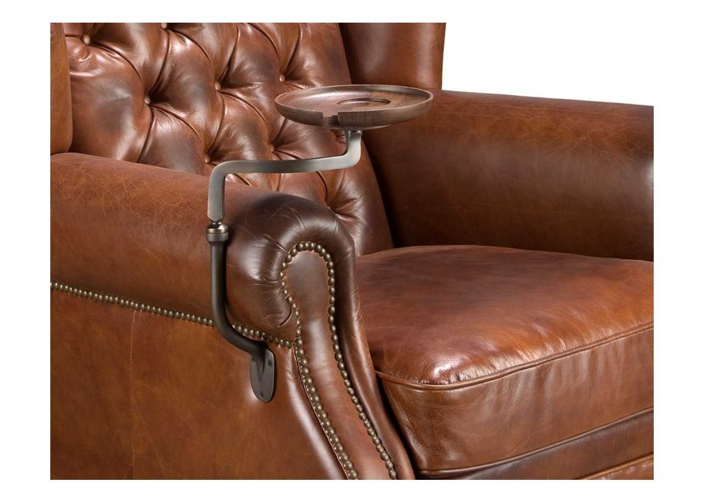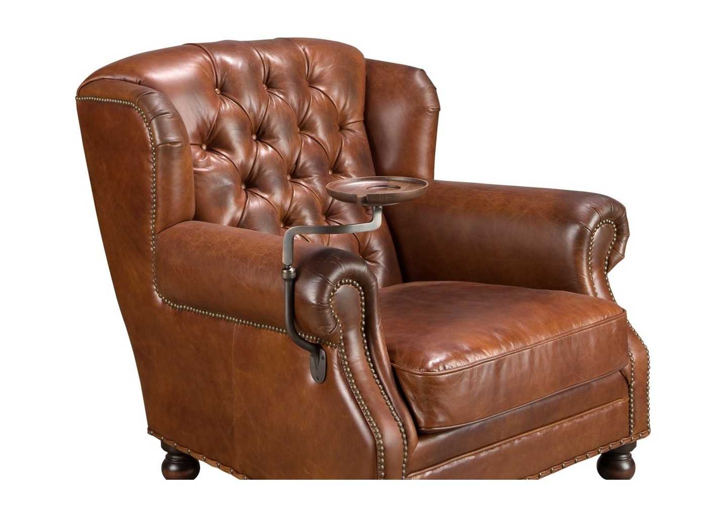 Fauteuil Chesterfield classique, tapissé de cuir véritable et monté sur roulettes - ARIANO