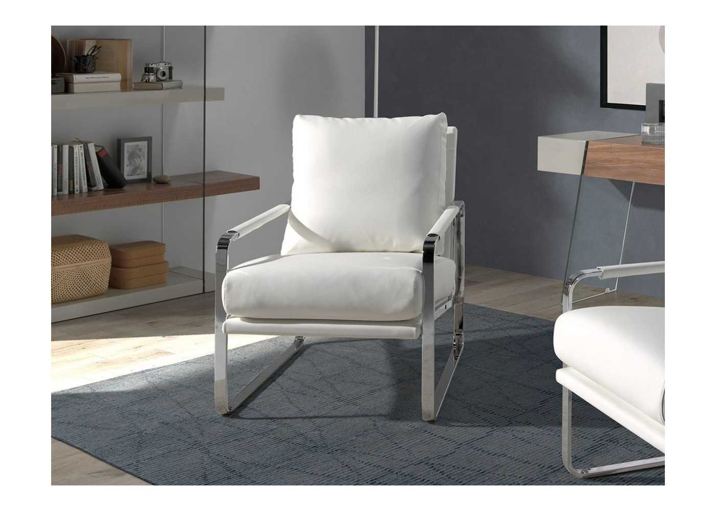 Fauteuil design tapissé avec structure en acier inoxydable - MATTIA