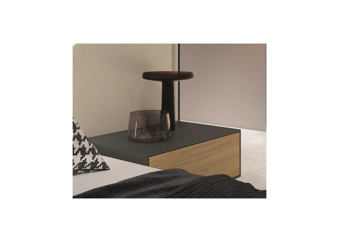 Lit design complet en chêne et finitions laquées avec éclairage LED, tables de chevet...